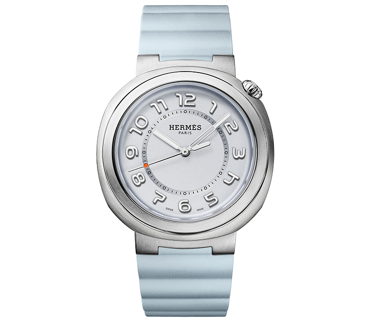 ธรรมชาติแห่งสไตล์อันหลากหลายของนาฬิกา แอร์เมส คัต ยังมาจากระบบถอดเปลี่ยนสายได้ ซึ่งทำหน้าที่ในการออกแบบสร้างสรรค์สไตล์เฉพาะตัว โดยการเล่นกับวัสดุและสีสัน ที่ในช่วงเวลาเพียงพริบตา คุณก็สามารถเปลี่ยนสลับจากสายแบบ สร้อยข้อมือโลหะไปเป็นสายยางตกแต่งลวดลายในหลากหลายเฉดได้ตามอารมณ์ ขณะที่สายยางนี้ยังมาพร้อมกับเฉดสีฟ้าหมอกซึ่งกลมกลืนเข้ากับหน้าปัดสีฟ้าอาชัวร์ใหม่อย่างลงตัว