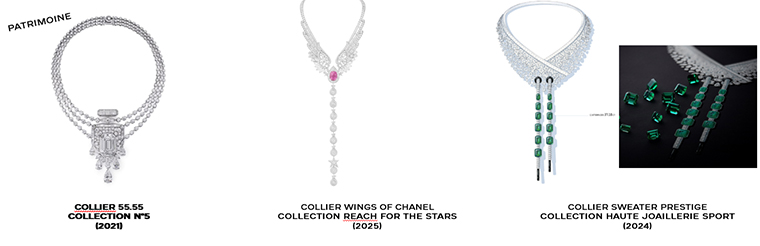 ในค่ำคืนอันแสนพิเศษนี้ CHANEL ได้รับรางวัล Grand Prix de la Haute Joaillerie, Best Piece of the Year ซึ่งมอบให้กับชิ้นงานที่สวยงามที่สุดแห่งปี โดยพิจารณาจากคุณภาพของงานฝีมือและความสอดคล้องกับประวัติศาสตร์และสไตล์ของแบรนด์ สร้อยคอ Sweater Prestige ประกอบผลิตขึ้นจากไวท์โกลด์ แพลทินัม และประดับด้วย เพชร, มรกต, และนิล, พร้อมด้วยมรกตเจียระไนแบบเหลี่ยมมรกต 11 เม็ด น้ำหนักรวม 37.18 กะรัต โดยคอลเลกชัน Haute Joaillerie Sport เฉลิมฉลองสไตล์สปอร์ตของ CHANEL ซึ่งเป็นส่วนหนึ่งของประวัติศาสตร์ของเมซงมาตั้งแต่ทศวรรษ 1920 นี่คือการผสมผสานที่ไม่เคยมีมาก่อนระหว่างสองโลกที่ซึ่งความสง่างามและความเป็นเลิศมีชัย การออกแบบของ SWEATER PRESTIGE ได้รับแรงบันดาลใจมาจากเสื้อสเวตเชิ้ตและเชือกรูดของชุดกีฬา