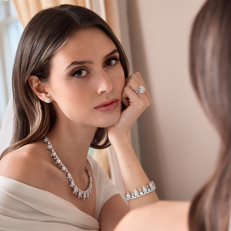 นอกจากแหวนหมั้น Mouawad ยังมอบประสบการณ์ครบวงจรสำหรับเจ้าสาว — ตั้งแต่แหวนแต่งงานคู่เข้าชุด สร้อยข้อมือเพชร สร้อยคอระยิบระยับ ต่างหูระย้า ไปจนถึงเครื่องประดับสั่งทำพิเศษที่ออกแบบเพื่อถ่ายทอดเรื่องราวความรักของแต่ละคู่