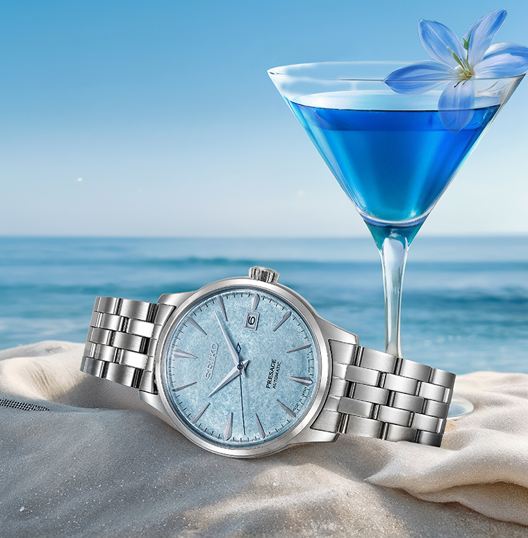 เครื่องดื่มค็อกเทลต้นแบบแห่งแรงบันดาลใจของหน้าปัดเรือนนี้ มาในชื่อ ‘Maya Bay’ ชื่อค็อกเทลแก้วนี้ เพียงได้ยิน ก็สามารถบรรยายออกมาเป็นภาพ สีสัน และบอกเล่าภาพแห่งความทรงจำได้อย่างตรงไปตรงมา