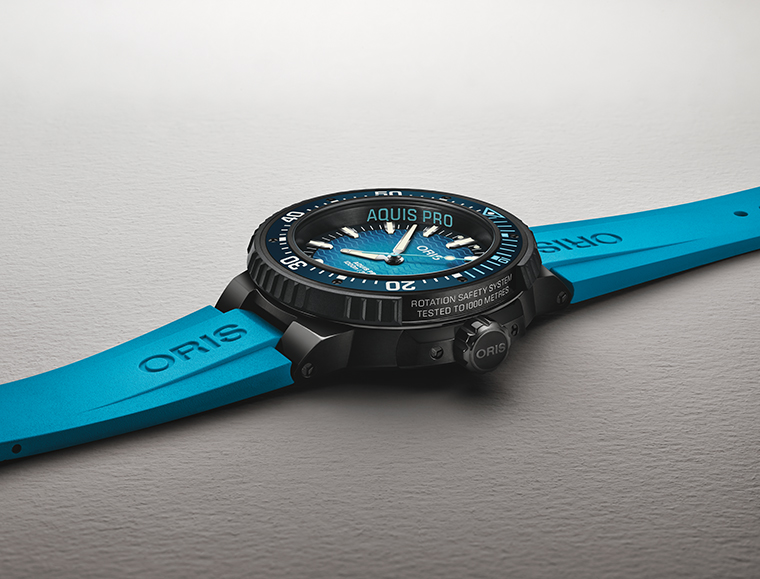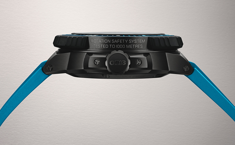 นาฬิการุ่นนี้ได้รับการออกแบบขึ้นโดยความร่วมมือกับนักดำน้ำมืออาชีพ ซึ่งได้เชิญชวนให้เราสร้างสรรค์มาตรวัดนาทีที่สามารถใช้งานได้อย่างมั่นใจ โดยไม่ต้องกังวลว่าจะถูกหมุนปรับโดยไม่ตั้งใจขณะอยู่ใต้น้ำ ด้วยเหตุนี้ เราจึงได้พัฒนา ระบบ Rotation Safety System หรือ RSS ซึ่งสามารถล็อกขอบตัวเรือนไว้หลังจากตั้งค่าแล้ว เพื่อให้การจับเวลาการดำน้ำมีความแม่นยำและเชื่อถือได้ ทำหน้าที่เป็นระบบสำรองที่ไว้ใจได้ควบคู่กับอุปกรณ์อิเล็กทรอนิกส์ นวัตกรรมนี้ได้รับการจดสิทธิบัตรโดย Oris และได้กลายเป็นสัญลักษณ์แห่งการออกแบบที่นักดำน้ำมืออาชีพทั่วโลกให้ความไว้วางใจ