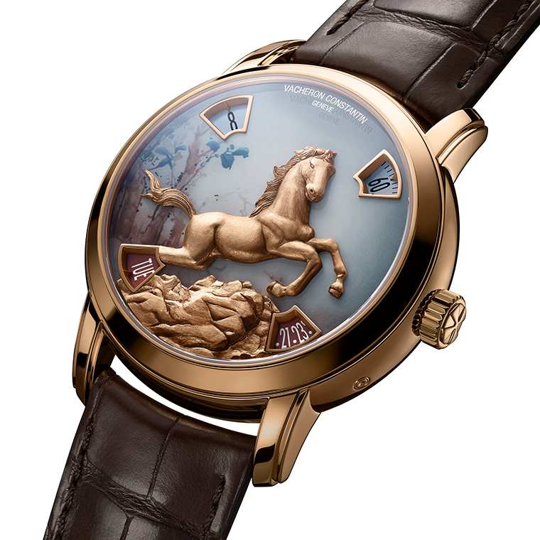 Vacheron Constantin ยังคงสืบสานการยกย่องวัฒนธรรมจีนผ่านคอลเลคชั่น Métiers d’Art The Legend of the Chinese Zodiac ด้วยการเปิดตัวเรือนเวลา รุ่นลิมิเต็ดจำนวน 25 เรือน สำหรับปีนักษัตรม้า ตัวเรือนขนาด 40 มิลลิเมตรบรรจุ กลไกคาลิเบอร์ 2460 G4 ที่มีความซับซ้อนและเทคนิคชั้นสูง ทำหน้าที่เป็นพื้น ฐานเพื่อเผยความงดงามทางศิลปะอย่างเต็มรูปแบบโดยช่างฝีมือหัตถศิลป์ชั้นสูง (Métiers d’art) ของเมซง ความงดงามอันทรงพลังของหน้าปัดซึ่งผสานเทคนิคการแกะสลักนูน การเพ้นท์ขนาดจิ๋ว และการลงยาด้วยเทคนิคกรองด์ เฟอ (Grand Feu) โดดเด่นยิ่งขึ้นด้วยตัวเรือนที่รังสรรค์จากแพลทินัม 950 หรือพิงค์โกลด์ 18K 4N