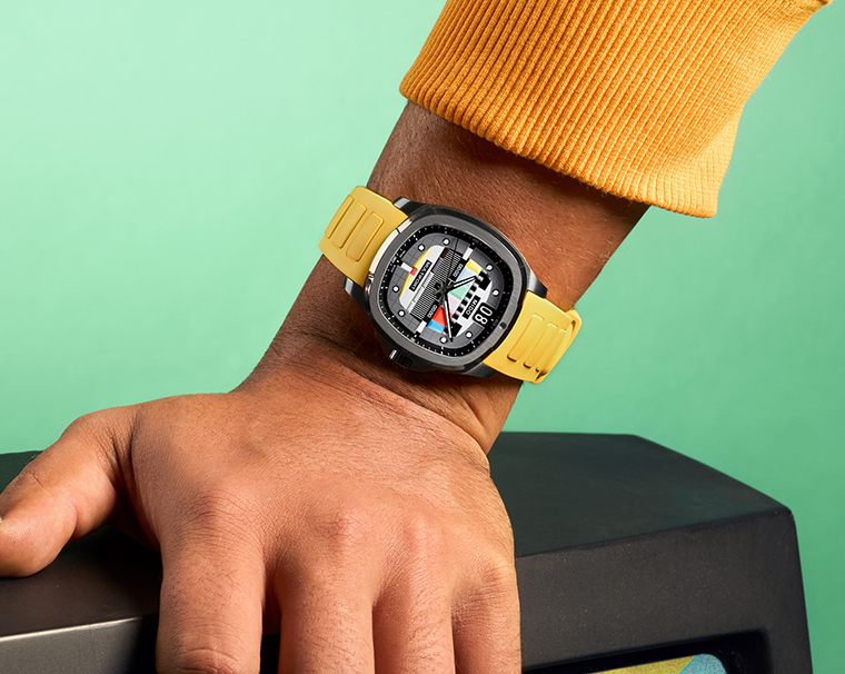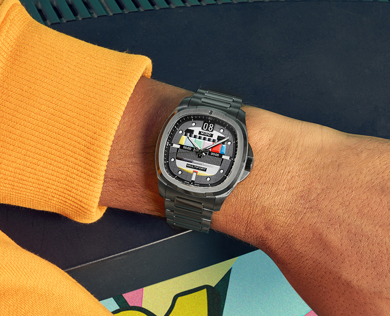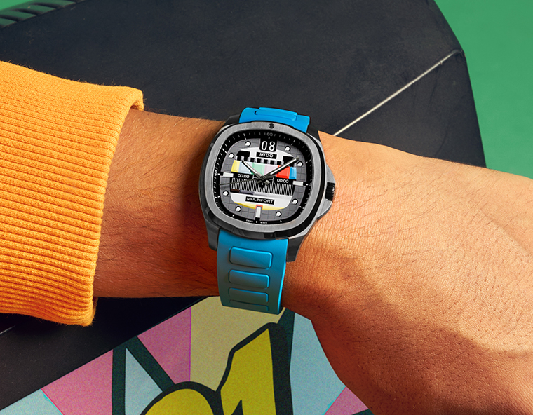 ในครั้งนี้ มิโด (MIDO) กลับมาจุดประกายและเติมสีสันให้วงการเรือนเวลาอีกครั้งกับผลงานล่าสุดในคอลเลกชั่นพิเศษ มัลติฟอร์ท ทีวี บิ๊ก เดท สเปเชียล อิดิชั่น เอส01อี02 (Multifort TV Big Date Special Edition S01E02) โดยหยิบยกแรงบันดาลใจจากยุคทองของจอโทรทัศน์มาถ่ายทอดผ่านหน้าปัดดีไซน์อันเป็นเอกลักษณ์ ที่จำลองลวดลายแถบคลื่นสัญญาณรบกวนหลากสีสุดคลาสสิกชวนให้รำลึกถึงวันวาน ให้กลายเป็นองค์ประกอบอันโดดเด่นบนหน้าปัดทรงทีวีสุดคลาสสิกที่สะท้อนกลิ่นอายเรโทร โดยคอลเลกชั่นนี้มาพร้อมตัวเรือนสเตนเลสสตีลเคลือบพีวีดีสีเทาขัดซาติน ชวนให้นึกถึงโลหะดิบ ซึ่งเป็นครั้งแรกที่วัสดุนี้ถูกนำมาใช้ในตระกูลของมัลติฟอร์ททีวีและเติมเต็มลุคโมโนโครมให้โดดเด่นยิ่งขึ้น ตัวสายถูกขัดเงาบริเวณข้อตรงกลาง และออกแบบให้เชื่อมต่อกับตัวเรือนได้อย่างเรียบเนียน นอกจากนี้ยังมาพร้อมสายนาฬิกา 3 สไตล์ ทั้งสายสแตนเลสสตีลที่ให้ลุคเรียบหรูดูสุขุม และสายนาฬิกายาง 2 เฉดสีที่มีดีไซน์ปั๊มลวดลายนูน ทั้งสีน้ำเงินสดเติมความเท่แบบโมเดิร์น และสีเหลืองสดที่ช่วยเพิ่มความสนุกสนานให้กับลุค มาพร้อมกรอบตัวเรือนขนาด 40 มิลลิเมตร บนหน้าปัดดีไซน์เฉพาะในธีมทีวีสุดวินเทจ ถ่ายทอดลวดลายคลื่นสัญญาณรบกวนหลากสีที่โดดเด่นตัดกับพื้นหลังสีเทา เสริมมิติให้โดดเด่นยิ่งขึ้นด้วยการขึ้นรูปนูนที่สะกดทุกสายตา โดยมีช่องแสดงวันที่ขนาดใหญ่ (Big Date) ที่ตำแหน่ง 12 นาฬิกา ใช้ตัวเลขสีขาวบนพื้นดำเพื่อให้อ่านค่าได้อย่างชัดเจน ด้านในหน้าปัดเสริมขอบแสดงนาที (Flange) เพื่อช่วยเพิ่มความชัดเจนในการอ่านเวลา