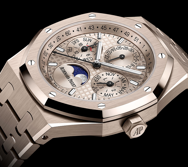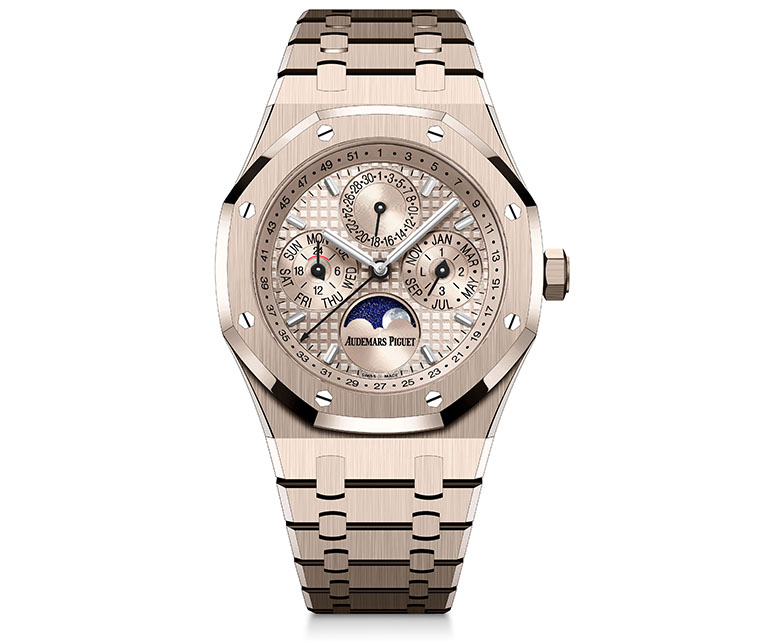 นาฬิกาข้อมือรุ่น Royal Oak Selfwinding Perpetual Calendar ทำจากแซนด์โกลด์ 18 กะรัต ได้รับรางวัล Iconic Watch ในงาน Grand Prix de l’Horlogerie de Genève. © รูปภาพลิขสิทธิ์จาก Audemars Piguet