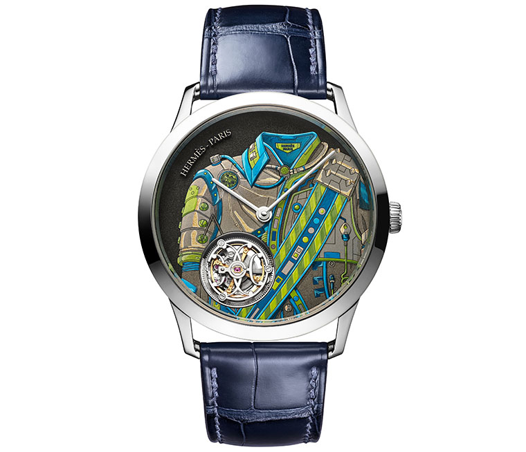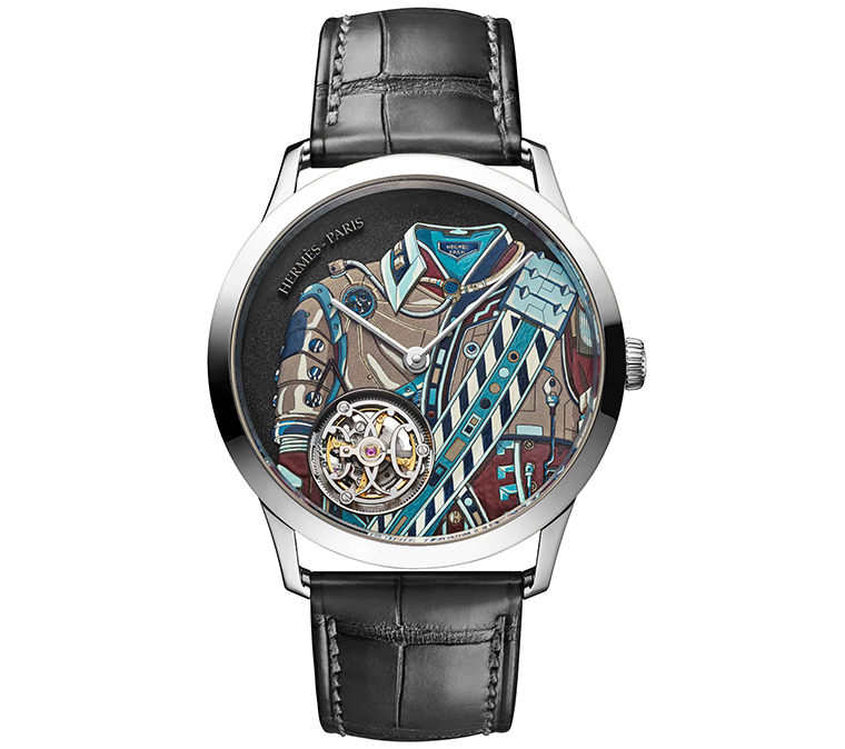 อุทิศให้กับความบริสุทธิ์ของเส้นสาย ที่เรือนเวลารุ่นผลิตจำนวนจำกัดเพียง 24 เรือน พร้อมด้วยตัวเรือนแพลทินัมขนาดเส้นผ่านศูนย์กลาง 39.5 มม. นี้ได้ถ่ายทอดด้วยหน้าปัดประดับตกแต่งภาพโครงร่างของแจ็กเก็ตทหาร ที่ผ่านการจินตนาการขึ้นมาใหม่โดยนักออกแบบชาวญี่ปุ่น ไดสึเกะ โนมูระ (Daiske Nomura) จากงานออกแบบเสื้อผ้านี้ซึ่งสร้างสรรค์ขึ้นครั้งแรกในปี ค.ศ. 1972 โดยศิลปิน เคที ลาแทม (Caty Latham) สำหรับผ้าพันคอไหมที่ได้รับแรงบันดาลใจมาจากหนังสือเกี่ยวกับเครื่องแบบในศตวรรษที่ 19 ซึ่งเป็นคอลเลกชันของ เอมิล แอร์เมส (Émile Hermès) โดยในวันนี้ กับชื่อที่ตั้งให้ว่า นีโอ แบรนเดอบูร์กส์ (Neo Brandebourgs) งานออกแบบดังกล่าวได้กลายมาเป็นตัวแทนถึงวิสัยทัศน์แห่งอนาคตของการสร้างสรรค์แจ็กเก็ตที่เต็มไปด้วยสีสันสดใส และออกแบบขึ้นให้เป็นเสมือน “เครื่องแบบของนักขี่ม้าของวันพรุ่งนี้”