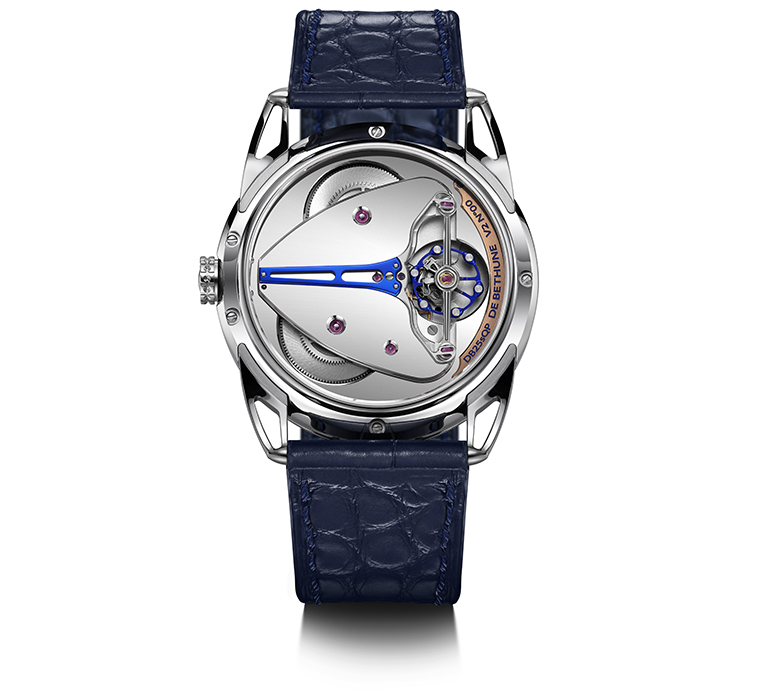 ตลอดหลายปีที่ผ่านมา ท้องฟ้าที่เต็มไปด้วยดวงดาวและภาพทางช้างเผือกได้กลายเป็นสัญลักษณ์สำคัญของแบรนด์ ลวดลายดังกล่าวถูกกำหนดขึ้นตามพิกัดภูมิศาสตร์และวันที่เฉพาะเจาะจง ทำให้สามารถปรับแต่งหน้าปัดไทเทเนียมชุบน้ำเงินที่ขัดเงาอย่างประณีต หลังจากผ่านกระบวนการขัดและชุบน้ำเงินด้วยเทคนิคออกซิเดชันความร้อนซึ่งเป็นเอกลักษณ์เฉพาะของ De Bethune ช่างฝีมือจะฝังหมุด