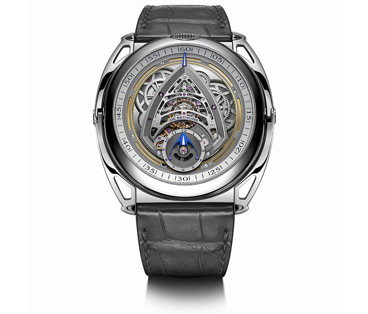 แม้พื้นที่จะจำกัด นาฬิกาเรือนนี้ยังคงถ่ายทอดความรู้สึกในเชิงมิติและความลึกได้อย่างชัดเจน รวมทั้งฟังก์ชั่น GMT และจังหวะวินาทีแบบกระโดด ซึ่งปรากฏผ่านเฟืองทองสองตัวตรงกลาง สะพานไทเทเนียมสามเหลี่ยมทรงเดลต้าที่ตั้งอยู่กลางกลไกหลายชั้น ยังช่วยเสริมทั้งความมั่นคงและความกลมกลืนโดยรวมของหน้าปัดนาฬิกา