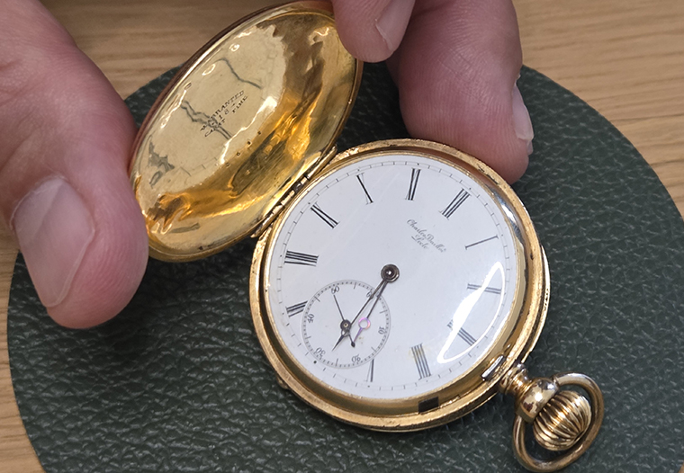 ได้ยินว่าคุณเพิ่งค้นพบนาฬิกาพกเก่าแก่ที่เกี่ยวเนื่องกับประวัติศาสตร์ของตระกูล คุณได้มาอย่างไร?