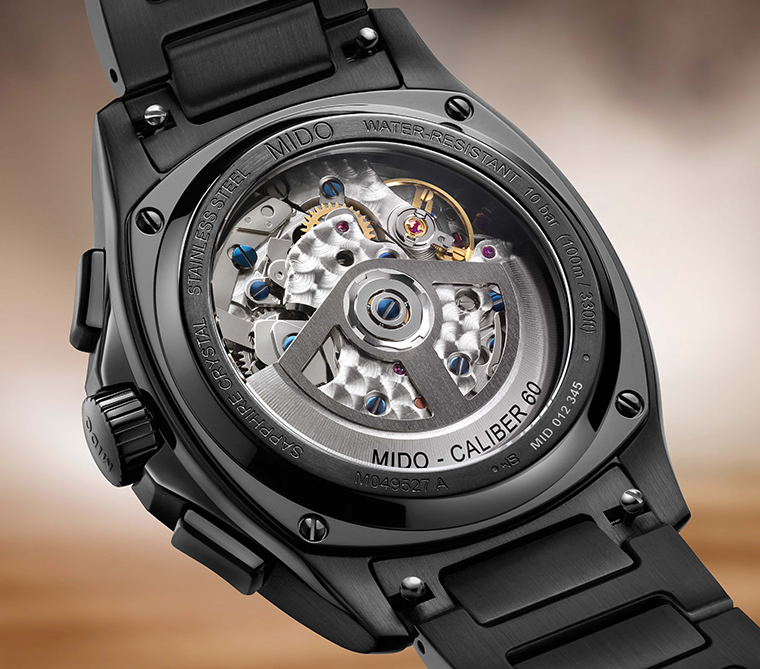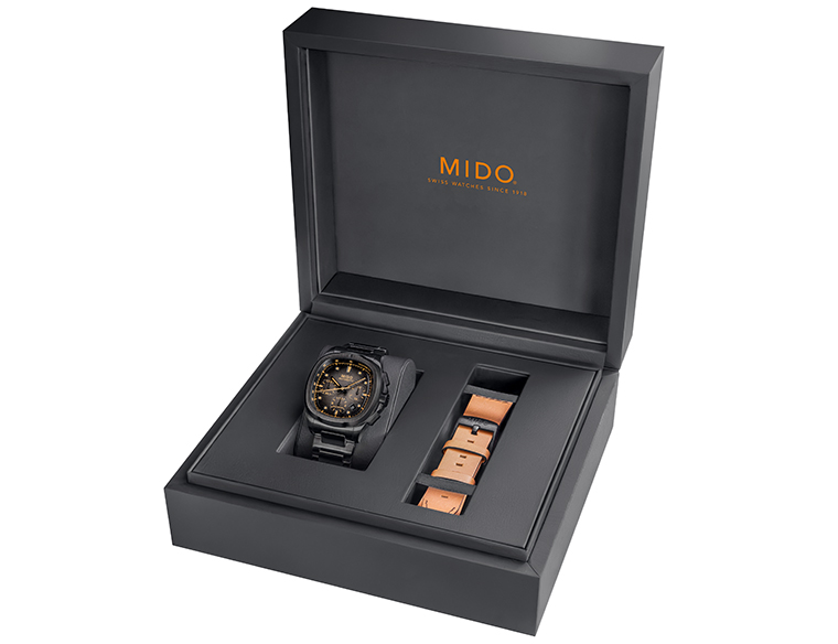 หลังจากที่ มิโด (MIDO) ได้นำแรงบันดาลใจจากดีไซน์ทรงทีวีสุดคลาสสิกยุค 1970 กลับมาเรียกความตราตรึงใจอีกครั้งในปี 2023 ในครั้งนี้ มิโด ได้ยกระดับคอลเลกชั่นนี้ด้วย มัลติฟอร์ท ทีวี โครโนกราฟ (Multifort TV Chronograph) โดยการบรรจุฟังก์ชันโครโนกราฟ (Chronograph) ลงในคอลเลกชั่นมัลติฟอร์ท ทีวี เป็นครั้งแรก หัวใจสำคัญของเรือนนี้อยู่ที่หน้าปัดทรงทีวีสุดคลาสสิกขนาด 42 มิลลิเมตร ที่ไล่เฉดสีจากสีเทาไปสู่สีดำราวกับการเปลี่ยนผ่านจากกลางวันสู่กลางคืน พร้อมลวดลายขัดแนวนอนที่สะท้อนแสงดึงดูดทุกสายตา เสริมความแข็งแรงด้วยตัวเรือนสแตนเลสสตีลขัดซาตินสลับเงา ตัวสายถูกออกแบบให้เชื่อมต่อกับตัวเรือนอย่างกลมกลืน เพิ่มความมีระดับด้วยการขัดเงาที่ข้อต่อตรงกลาง พร้อมเคลือบ PVD สีดำอย่างเรียบหรู ในส่วนของเข็มชั่วโมงและเข็มนาที รวมถึงเข็มหน้าปัดย่อย สีดำถูกขัดเหลี่ยมเพชรอย่างประณีต ด้านเข็มวินาทีถูกเจียระไนและเคลือบด้วยแลคเกอร์สีเบจตัดกับตัวเรือนสีดำอย่างลงตัว พร้อมเคลือบสารเรืองแสงซูเปอร์ลูมิโนวา(Super-LumiNova®) สีเบจบนเข็มชั่วโมง เข็มนาทีและบนหลักชั่วโมงแบบนูน เพิ่มความชัดเจนในการมองเห็นแม้ที่แสงน้อย โดดเด่นด้วยตัวฟังก์ชันจับเวลาเพื่อความเที่ยงตรงสูงสุดที่มาพร้อมหน้าปัดย่อยสำหรับจับเวลา 3 ตำแหน่ง ประกอบด้วย 60 วินาที, 30 นาที และ 12 ชั่วโมง พร้อมช่องบอกวันที่ ขณะที่ขอบหน้าปัดยังติดตั้งมาตรวัดความเร็ว (Tachymeter Scale) ช่วยเสริมความสปอร์ตพร้อมฟังก์ชันที่ครบครัน ประกอบด้วยช่องแสดงวันที่ในตำแหน่ง 4 นาฬิกา 30 นาที ทำให้หน้าปัดสมบูรณ์พร้อมสำหรับความท้าทายทุกรูปแบบ ตัวเรือนติดตั้งเม็ดมะยมแบบขันเกลียว ด้านข้างมีปุ่มกดสองปุ่มเพื่อให้ใช้งานฟังก์ชันโครโนกราฟได้ราบรื่นและแม่นยำยิ่งขึ้น พร้อมระบบล็อกสายแบบบานพับพร้อมสลักโลโก้ MIDO ทำให้สามารถถอดเปลี่ยนสายได้อย่างง่ายดาย นอกจากนี้ยังมาพร้อมกับฝาหลังแบบขันเกลียวดีไซน์โปรงใส่ถูกเผยให้เห็นการทำงานของกลไกคาลิเบอร์ 60 (Caliber 60) ได้อย่างน่าประทับใจ ไม่ว่าจะเป็น จานเหวี่ยง (Oscillating weight) และ สกรูสีน้ำเงิน (Blued Screw) ที่เคลื่อนไหวเหนือสะพานจักรที่ตกแต่งด้วยลวดลายวงกลมอย่างงดงาม พร้อมสลักโลโก้ MIDO และหมายเลขประจำเรือนไว้ประณีต และครอบด้วยกระจกคริสตัลแซฟไฟร์ที่เคลือบด้วยสารกันสะท้อนทั้งด้านในและด้านนอกเพื่อความชัดเจนในการมองเห็น นาฬิกาเรือนนี้มาพร้อมบาลานซ์สปริงนิวาครอง (Nivachron™) ที่ช่วยเพิ่มความทนทานต่อสนามแม่เหล็กและแรงกระแทก พร้อมคงความเสถียรในทุกสภาพแวดล้อม รวมถึงสามารถสำรองพลังงานได้นานสูงสุด 60 ชั่วโมง ทั้งยังรองรั