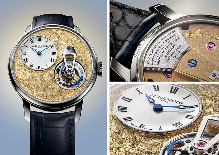 ด้วยการตีความใหม่ของ Constant Force Tourbillon 11 Platinum (คอนสแทนท์ ฟอร์ซ ทูร์บิยอง 11 แพลทินัม) Arnold & Son (อาร์โนลด์ แอนด์ ซัน) ได้ยกย่องอัจฉริยภาพในการประดิษฐ์นาฬิกาของผู้ก่อตั้งแบรนด์ นาฬิการุ่นแพลทินัมนี้เป็นผลงานชิ้นสุดท้ายของคอลเลกชัน Constant Force 11 (คอนสแทนท์ ฟอร์ซ 11) ซึ่งเปิดตัวด้วยรุ่นตัวเรือนทองคำ และเป็นบทสรุปของการเฉลิมฉลองมรดก 260 ปี นอกจากนี้ ยังเป็นการเฉลิมฉลองความมหัศจรรย์ของธรรมชาติ ด้วยหน้าปัดที่ตกแต่งด้วยลวดลายกิโยเช่ "tremblé" ที่แกะสลักด้วยมือ ซึ่งชวนให้นึกถึงทุ่งหญ้าที่ปกคลุมด้วยเฟิร์นรอบ ๆ ทินทาเจล ในคอร์นวอลล์ ซึ่งเป็นบ้านเกิดของ จอห์น อาร์โนลด์ และฉากหลังของตำนานกษัตริย์อาเธอร์