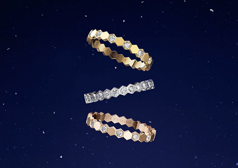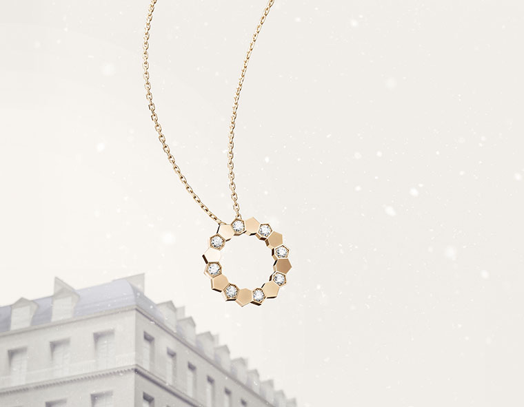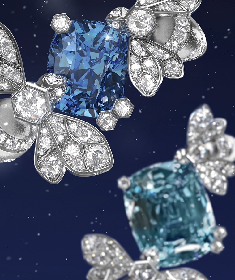 ประดับประดาด้วยความงดงามเจิดจรัสที่สุด ตัวผึ้งที่มีการฝังเพชรแบบ Pavé โดดเด่นอยู่ทั้งบนแหวน "toi et moi" และ สร้อยคอยาวแบบ Sautoir ที่ประดับด้วยพู่ที่ละเอียดอ่อนประกอบด้วยโซ่ทองคาเล็กหลายเส้นเคลื่อนไหวอย่ำงอิสระ และทำให้คุณประหลาดใจด้วยความเบาอันน่าทึ่ง