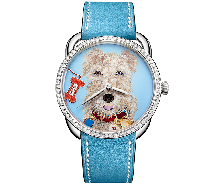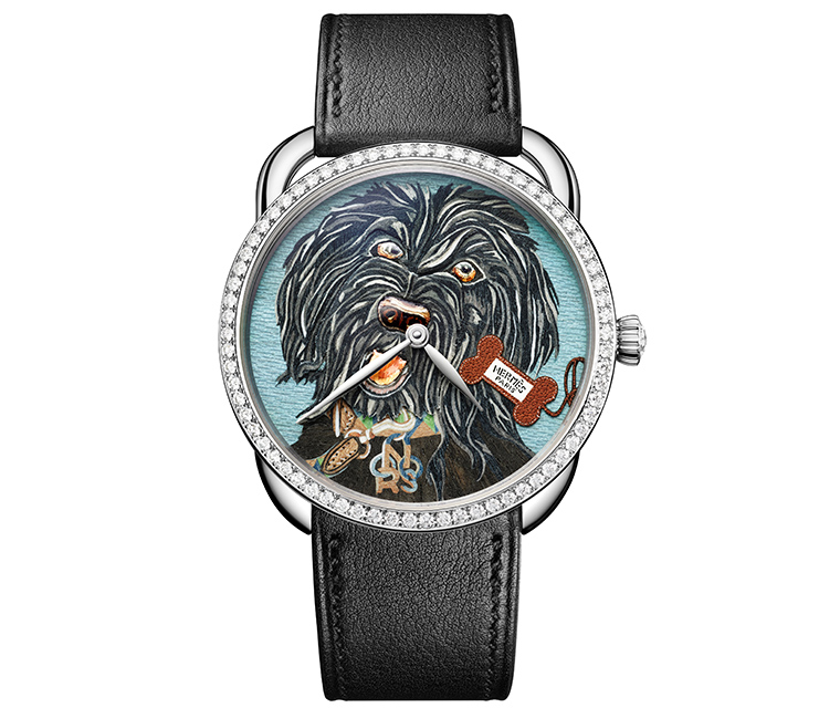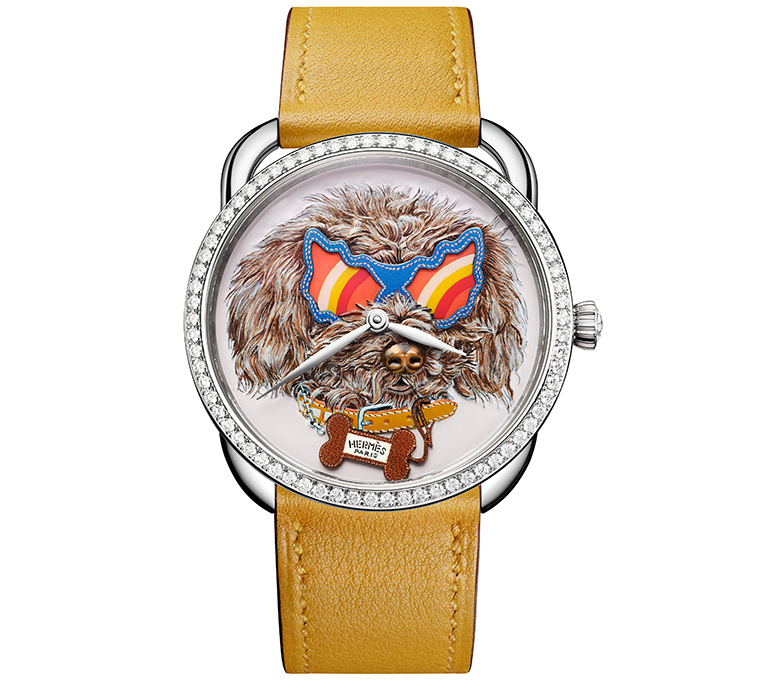 ผลงานการออกแบบโดยศิลปินนามว่า ลิซ สเตอร์ลิง (Liz Stirling) โดยเจ้าสุนัขสวมปลอกคอลวดลายประณีต ทั้งออร์สัน (Orson), เอมี (Amy) และทาโค (Taco) ต่างก็โพสท่าอย่างแสนซนบนศูนย์กลางของหน้าปัด พร้อมด้วยกระดูกหนังแท้ที่สะท้อนถึงงานหัตถศิลป์ด้านเครื่องหนังอันเป็นเอกลักษณ์ของ Hermès