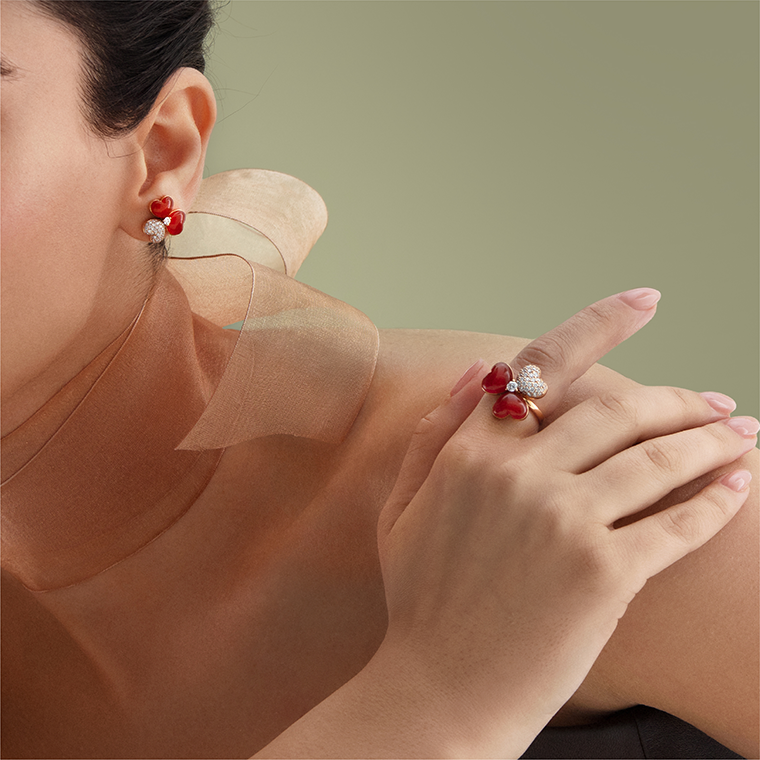 Flower of Eternity – การเฉลิมฉลองความงดงามของสัญลักษณ์เหนือกาลเวลาจากธรรมชาติ ถ่ายทอดใหม่อย่างประณีตผ่านการผสมผสานของฮาร์ดสโตนและเพชร ด้วยวิธีการฝังเพชรแบบ pavé ตั้งแต่โทนแดงลุ่มลึกของ Red Agate ไปจนถึงความงามเขียวมรกตของ Malachite แต่ละชิ้นสะท้อนถึงการผลิบานนิรันดร์ของสายสัมพันธ์และการเติบโต Flower of Eternity จึงเปรียบเสมือนเครื่องเตือนใจในทุกวันถึงคำปรารถนาที่เป็นจริง และความงดงามที่เหนือการเปลี่ยนแปลงของฤดูกาล