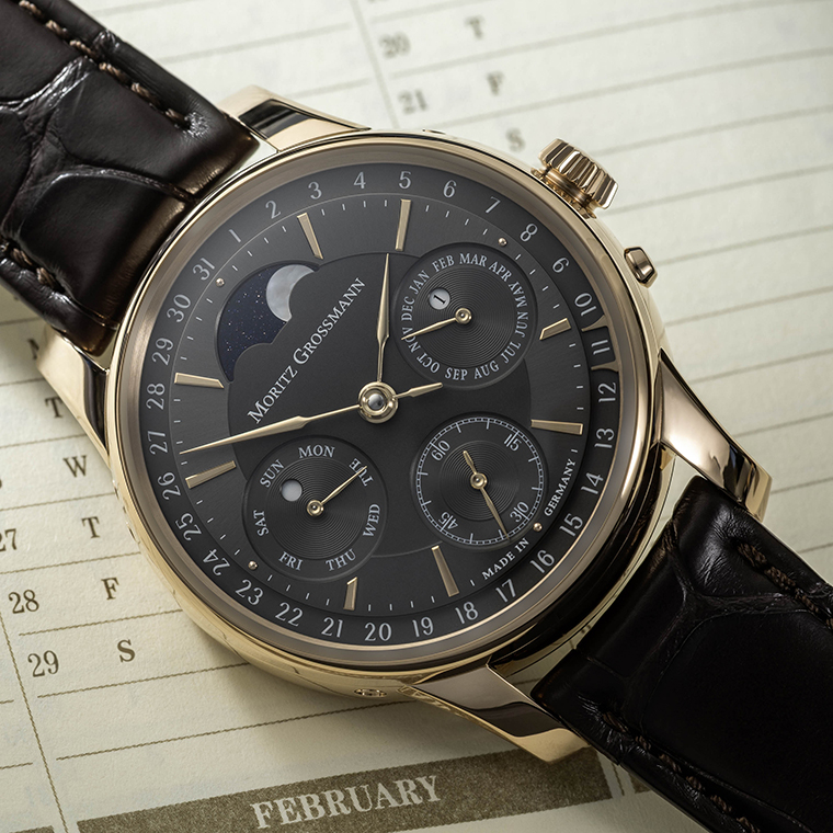 สําหรับ Moritz Grossmann (มอริทซ์ กรอสมันน์) แล้ว เป้าหมายเบื้องหลังการสร้างสรรค์นาฬิกา PERPETUAL CALENDAR (เพอเพทช่วล คาเลนดาร์) เรือนใหม่นี้ คือการสร้างนาฬิกาที่อยู่เหนือกาลเวลาที่เปลี่ยนแปลง และรักษา ความเป็นตัวเองไว้ได้อย่างถาวร กลไกของนาฬิกาจะแสดงวันที่ได้อย่างถูกต้องตลอดไป แม้ว่าเดือนจะมีจํานวนวัน ต่างกัน หรือปีนั้นจะเป็นปีอธิกสุรทิน (Leap Year) กลไกสลับซับซ้อนนี้ถือเป็นหนึ่งในความท้าทายที่ยิ่งใหญ่ที่สุดในโลก แห่งการผลิตนาฬิกา ซึ่งเป็นการรวมเอาเทคโนโลยีที่แม่นยําเข้ากับสุดยอดงานฝีมือระดับปรมาจารย์