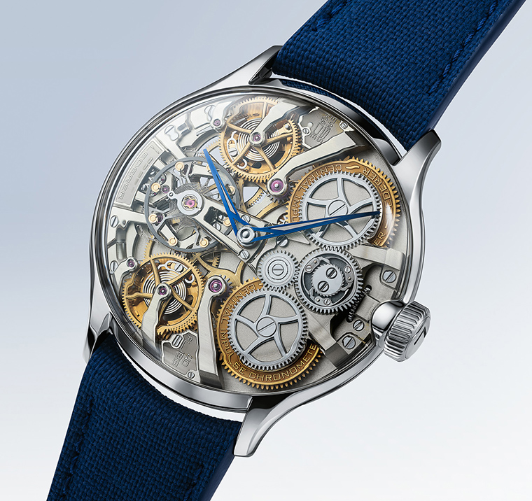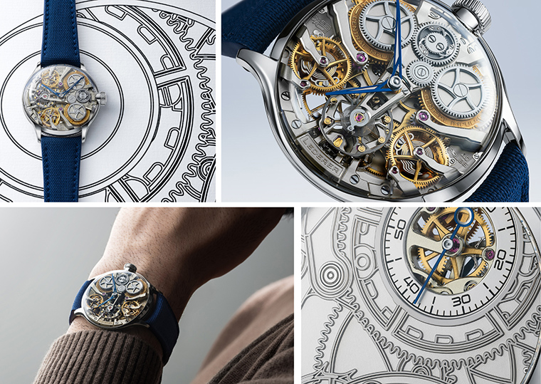 สถาปัตยกรรมแบบกลับด้านเผยให้เห็นองค์ประกอบส่วนที่ปกติมักจะถูกซ่อน จากสายตา ผลลัพธ์คือภาพของกลไก เฟือง สปริง และระบบควบคุมความ เสถียรของพลังงานหรือ remontoir คู่ ที่เคลื่อนไหวสอดประสานอย่างงดงามและสง่าผ่าเผยราวกับท่วงท่าของเหล่านักแสดงบนเวที ยกระดับความงามบริสุทธิ์ของกลไกให้เป็นประสบการณ์ที่น่ารับชม