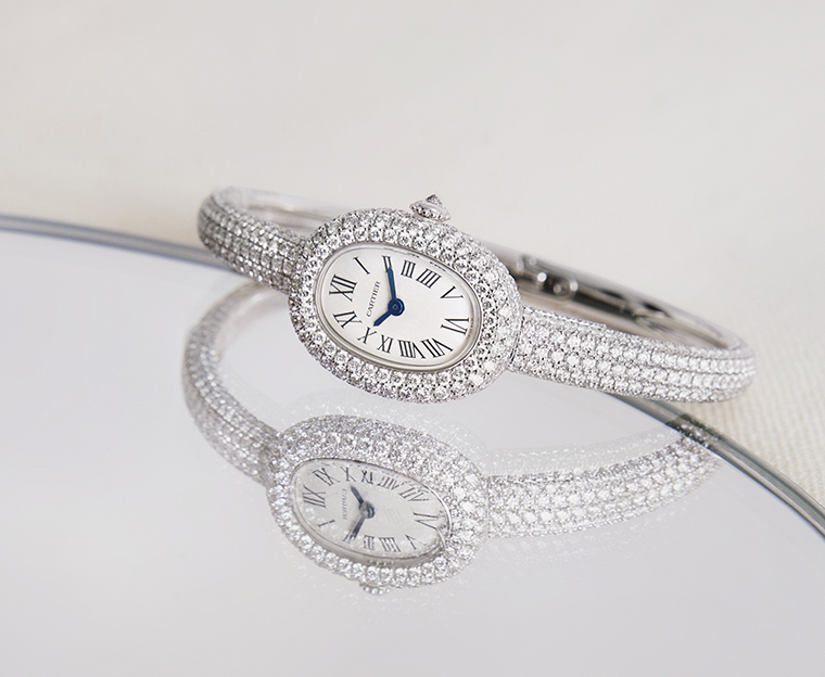 เรือนเวลาเบญนัวร์ (Baignoire) แบบกำไลที่เผยโฉมเมื่อสามปีก่อนคือนิยามของการรังสรรค์เรือนเวลาที่ได้รับแรงบันดาลใจจากเครื่องประดับของคาร์เทียร์ สำหรับเรือนนี้ความพิเศษถูกถ่ายทอดผ่านการออกแบบเปี่ยมเอกลักษณ์ที่หรูหราทว่าลงตัวอย่างพอดี