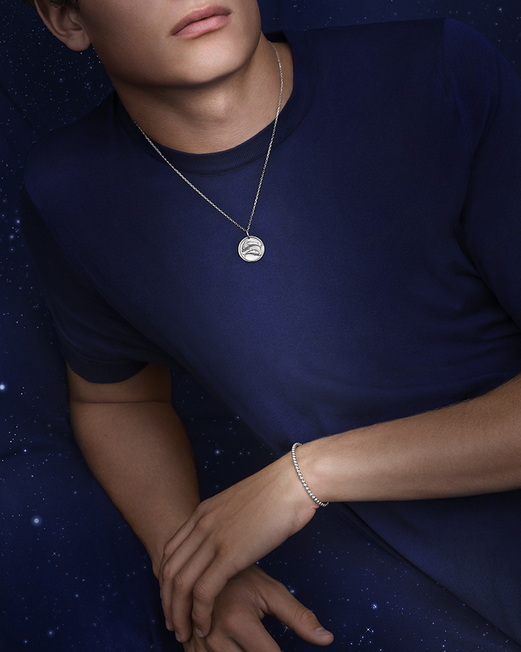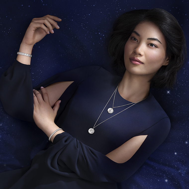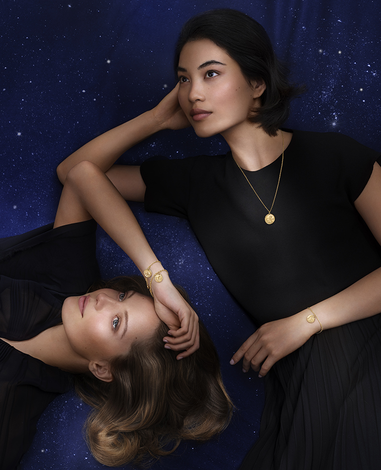 นับจากทศวรรษ 1950 เป็นต้นมา ที่ความตระการตาของโพ้นจักรวาลกว้างไกล และเจิดจรัสไปด้วยประกายแสงแห่งมวลดาราจักรได้สร้างแรงบันดาลใจให้ VAN CLEEF & ARPELS ออกแบบเครื่องประดับตามรูปนักษัตร สัญลักษณ์จักรราศี โดยอาศัยความหลากหลายทางมวลวัสดุ ไม่ว่าจะเป็นทองคำล้วน หรือการจับคู่ร่วมกับรัตนศิลา เลอค่าหายาก ผลงานแต่ละรุ่นล้วนสะท้อนถึงความเชื่อเชิงสัญลักษณ์อันมีต่อหมู่ดาวประจำราศีเกิดทั้งสิบสอง สำหรับฤดูกาลนี้ เมซงยังคงสืบสานธรรมเนียมนิยมในการรังสรรค์เหรียญรูปนักษัตรเหล่านี้ด้วยการใช้ทองคำสีขาว พร้อมขยายความหลากหลายทางการสวมใส่ใช้งานมาสู่สร้อยข้อมือเพื่อเป็นเครื่องประดับประจำราศีของผู้สวมใส่อย่างแท้จริง
