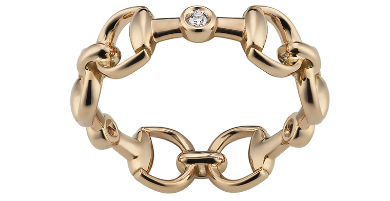 Gucci เดินหน้าต่อยอดความงดงามเหนือกาลเวลาของคอลเลกชันอันเป็นเอกลักษณ์ Horsebit ด้วยการเพิ่มไลน์ไฟน์จิวเวลรีชิ้นใหม่ ที่นำแรงบันดาลใจจากโลกแห่งการขี่ม้า รากฐานทางสุนทรียะที่ฝังแน่นในประวัติศาสตร์ของแบรนด์ มาถ่ายทอดอย่างสง่างามผ่านสร้อยคอ สร้อยข้อมือ ต่างหู และแหวน ผลิตจากทองคำเหลืองหรือทองคำขาว ประดับเพชรอย่างประณีต