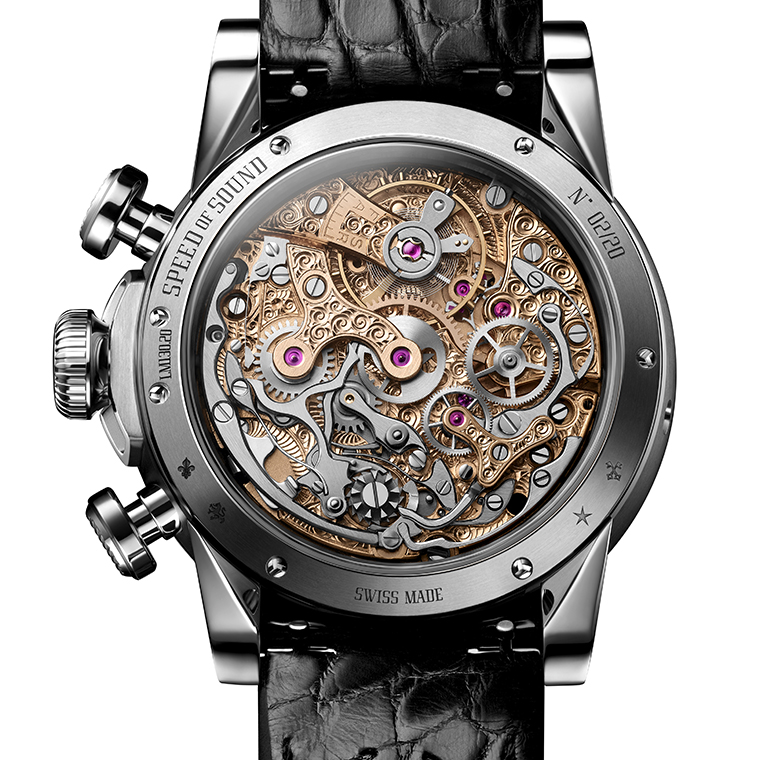 หัวใจสําคัญของนาฬิกา SPEED OF SOUND คือกลไก Valjoux 88 ซึ่งเป็นคาลิเบอร์ประวัติศาสตร์ที่สร้างขึ้นในช่วงทศวรรษ 1940 ช่างนาฬิกาผู้ชํานาญของ Louis Moinet ได้ใช้ทักษะทั้งหมดเพื่อยกระดับกลไกระดับตํานานของสวิสรุ่นนี้ ให้ทันสมัยและบรรจุลงในตัวเรือนที่มีสไตล์ร่วมสมัยไม่ซ้ำใคร