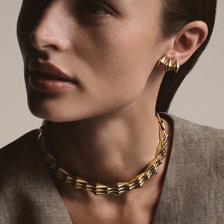 จากการผสานอันลงตัวระหว่างเยลโลวโกลด์สีทองอร่าม กับ สารเคลือบคาร์บอนคล้ายเพชร สีดำโดดเด่น และการฝังเพชรพาเว่แบบคาเร่ต์ (carré-set diamond pavé) มอบสัมผัสที่ทันสมัยให้แก่ผู้สวมใส่ ผลงานเหล่านี้ได้รับการออกแบบในรูปแบบแนวนอนและแนวตั้ง ทั้งสร้อยคอแบบโชเกอร์ สร้อยคอแบบคลาสสิก และการออกแบบอันล้ำสมัยสไตล์ปอนโช (poncho-style)