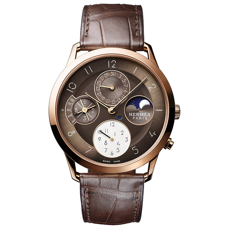 ออกแบบโดย ฟิลิปป์ เดโลตัล (Philippe Delhotal) ในปี ค.ศ. 2015 นาฬิกา สลิม เดอ’แอร์เมส (Slim d’Hermès) เป็นเสมือนตัวแทนแห่งการหวนคืนสู่หลักการอันเป็นพื้นฐาน ด้วยเส้นสายเพรียวบางที่ผสมผสานเข้ากับความสลับซับซ้อนแห่งเครื่องบอกเวลาอันเป็นที่ถวิลหา ซึ่งรู้จักกันเป็นอย่างดีว่า ปฏิทินถาวร หรือเพอร์เพทชวล คาเลนดาร์ (perpetual calendar)