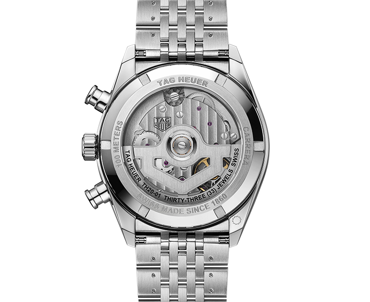 ภายใต้หน้าปัดกลไก TH20-01 ที่สะท้อนความเชี่ยวชาญด้านการประดิษฐ์นาฬิกาอย่างแท้จริง พร้อมพลังงานสำรองยาวนานถึง 80 ชั่วโมงด้วยระบบคลัตช์แนวตั้ง เพื่อการทำงานของโครโนกราฟที่ต่อเนื่องไร้รอยต่อ คอลัมน์วีลเพื่อการสั่งงานที่แม่นยำและการขึ้นลานอัตโนมัติแบบหมุนได้สองทิศทาง มอบประสิทธิภาพและความเที่ยงตรงในทุกจังหวะการจับเวลาผ่านฝาหลังแซฟไฟร์แบบโปร่งใส โครงสร้างอันประณีตของกลไกถูกเผยให้เห็นอย่างชัดเจน เปิดมุมมองสู่หัวใจของเรือนเวลาที่งดงามเหนือกาลเวลา