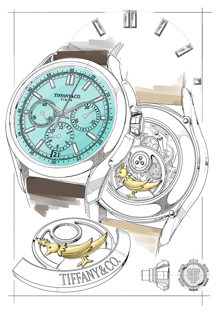 ย้อนกลับไปในปี 1847 เมื่อ Tiffany & Co. เริ่มจำหน่ายนาฬิกา Charles Lewis Tiffany ได้เล็งเห็นถึงความต้องการที่เพิ่มขึ้นอย่างต่อเนื่องของนาฬิกาคุณภาพสูงและเที่ยงตรงเป็นพิเศษ จึงเริ่มนำเสนอนาฬิกาหลากหลายรุ่น รวมถึงผลงานจากช่างนาฬิกาชาวสวิส ความต้องการที่เติบโตนี้นำไปสู่การเปิดตัว Tiffany & Co. Timing Watch ในปี 1866 ซึ่งเป็นนาฬิกาพกที่ออกแบบมาเพื่อใช้ทั้งในงานวิทยาศาสตร์และการแข่งขันกีฬา และได้รับการยอมรับในปัจจุบันว่าเป็นนาฬิกาจับเวลาหรือสต็อปวอทช์เรือนแรกของ Tiffany สองปีต่อมา นาฬิการุ่นนี้ถูกเปลี่ยนชื่อเป็น “Tiffany & Co. Timer” พร้อมกับการเปิดเวิร์กช็อปประกอบนาฬิกาของ Tiffany & Co. ในสวิตเซอร์แลนด์ และในปี 1874 เฮาส์ได้ก่อตั้งโรงงานผลิตนาฬิกาอย่างเต็มรูปแบบ ณ ใจกลางนครเจนีวา ผลิตนาฬิกาที่มาพร้อมกลไกซับซ้อนหลากหลาย อาทิ โครโนกราฟและปฏิทิน พร้อมทั้งได้รับสิทธิบัตรด้านนวัตกรรมของกลไกและระบบตั้งเข็ม ตลอดจนการพัฒนาอื่น ๆ อีกมากมาย