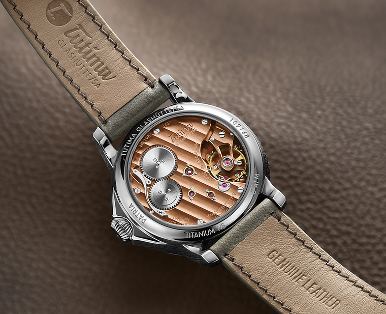 เมื่อเรือนเวลาข้อมือรุ่นแรกถือกำเนิดขึ้นในเมือง Glashütte ช่วงปลายทศวรรษ 1920 ผู้ก่อตั้งอย่าง ดร. แอร์นสต์ เคิร์ตซ์ (Dr. Ernst Kurtz) ได้สงวนตราสัญลักษณ์แห่งความเป็นเลิศ “Tutima” ไว้ใช้เฉพาะกับนาฬิการะดับสูงสุดที่มีกลไกเต็มเปี่ยมด้วยความเที่ยงตรงและเชื่อถือได้เท่านั้น ในระยะแรก “Tutima” ทำหน้าที่เป็นเครื่องหมายรับรองคุณภาพ ก่อนจะพัฒนาเป็นชื่อแบรนด์ในเวลาต่อมา โดยมีรากศัพท์มาจากคำคุณศัพท์ภาษาละติน “tutus” ซึ่งหมายถึง “ปลอดภัย” และ “ได้รับการปกป้อง” โรงงานผลิตนาฬิกายังคงยึดมั่นในความหมายของชื่อนี้อย่างแน่วแน่ และเป็นครั้งแรกที่ความเชี่ยวชาญด้านไทเทเนียมของแบรนด์ซึ่งสั่งสมมายาวนานหลายทศวรรษ ถูกนำมาประยุกต์ใช้กับคอลเลคชั่น Patria ตัวเรือนขัดเงาสูงทั้งขนาดร่วมสมัย 41 มิลลิเมตร โดยผลิตจากไทเทเนียมเกรด 5 ทั้งชิ้น ผสานคุณสมบัติน้ำหนักเบา ความทนทานต่อรอยขีดข่วนและการกัดกร่อนพร้อมทั้งให้ความเป็นมิตรต่อผิวหนังอย่างยอดเยี่ยม บริเวณด้านข้างของตัวเรือนได้รับการออกแบบให้โค้งรับอย่างสง่างาม ซึ่งทำหน้าที่เป็นเกราะปกป้องเม็ดมะยมที่ออกแบบตามหลักสรีรศาสตร์และตกแต่งด้วยลายร่องอย่างประณีต ภายใต้กระจกแซฟไฟร์ทรงโดมเคลือบสารป้องกันแสงสะท้อน หน้าปัดเผยรายละเอียดอันประณีตในทุกมิติ ลวดลายพีระมิดสร้างมิติแห่งแสงและเงาในแบบสามมิติ ซึ่งแปรเปลี่ยนไปตามมุมสะท้อนของแสงลวดลายร่องละเอียดทอดตามแนววงกลมของหน้าปัดย่อยวินาที ขณะที่สเกลนาทีด้านนอกช่วยขับกรอบหน้าปัดให้ดูเด่นชัดบนพื้นผิวเรียบอย่างลงตัว