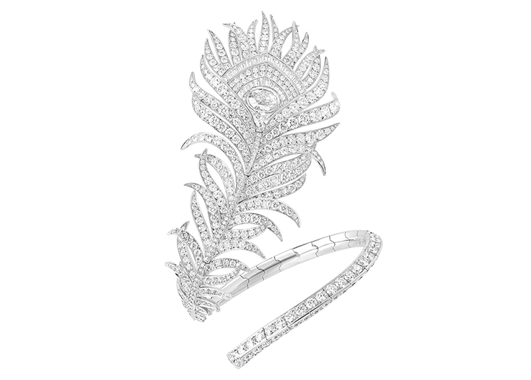 ขนนกยูง ถือเป็นสัญลักษณ์ของความเบา ดีไซน์อันโปร่งบางบนตัวเรือนทองคำขาวประดับเพชรเต็มเรือนนี้ ได้รับแรงบันดาลใจจากการเคลื่อนไหวที่อ่อนพลิ้วของขนนก ด้วยการรังสรรค์อย่างประณีตจากเวิร์กช็อปของเมซง ลวดลาย Plume de Paon ยังคงได้รับการตีความใหม่อย่างไม่หยุดยั้ง