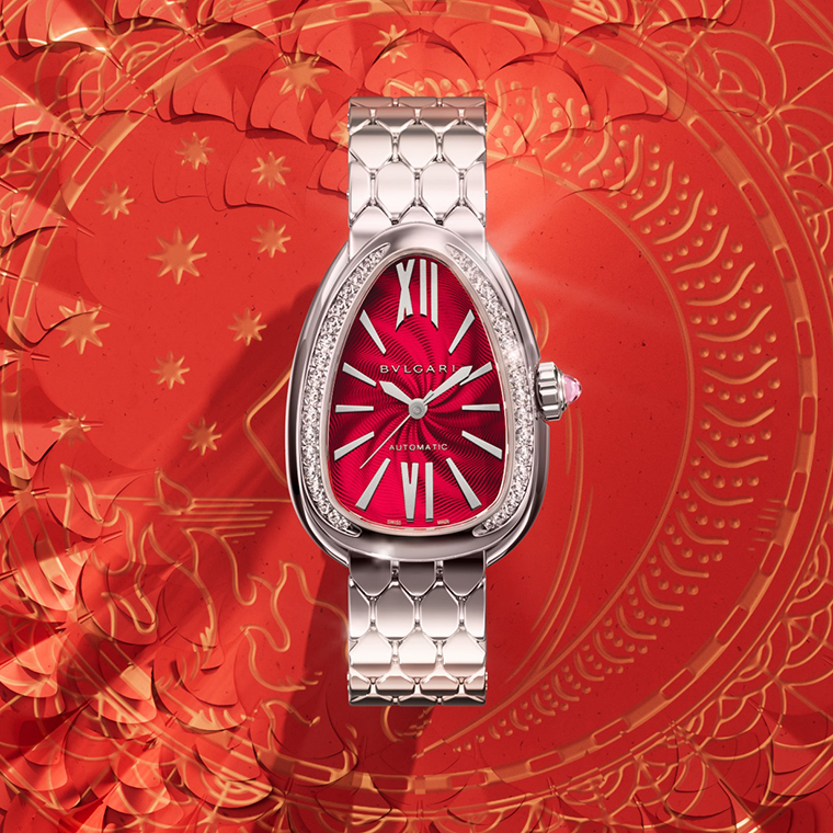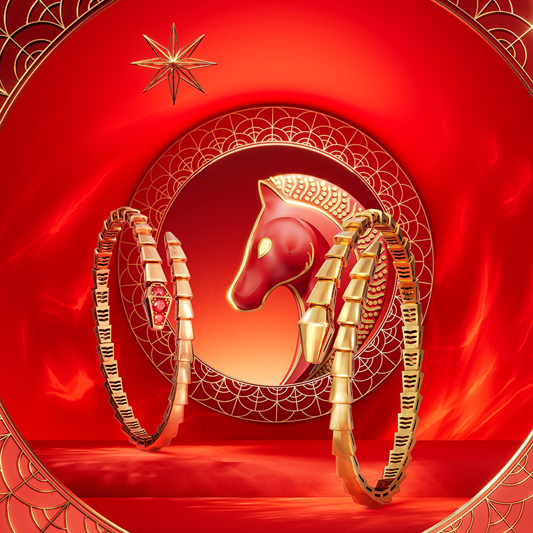 ในโลกของเรือนเวลา บุลการีเฉลิมฉลองเทศกาลตรุษจีนด้วยเซอร์เพนติ เซดูโตริ ออโตเมติก รุ่นลิมิเต็ดเอดิชั่น (limited edition of Serpenti Seduttori Automatic) นาฬิกาเรือนนี้โดดเด่นด้วยหน้าปัดกิโยเช่สีแดงทับทิมระยิบระยับ (ruby-red guilloché dial) สื่อถึงพลัง ความทะเยอทะยาน และความสง่างามของม้า ขับเคลื่อนด้วยกลไกอัตโนมัติเลดี้ โซโลเทมโป (Lady Solotempo) ที่ผลิตเองภายใน เส้นผ่านศูนย์กลางเพียง 19 มม. หนา 3.90 มม. เป็นการผสมผสานระหว่างความมีชีวิตชีวาของเทศกาลและสุนทรียภาพอันเป็นเอกลักษณ์ เข้ากับประสิทธิภาพสูงสุดและความงามที่เปลี่ยนแปลงไปของเซอร์เพนติ