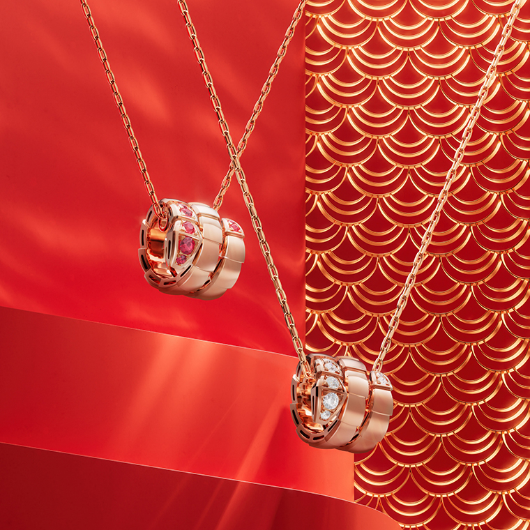 นอกจากผลงานสร้างสรรค์ในช่วงการเฉลิมฉลองแล้ว ผลงานเอกลักษณ์ยังคงได้เปล่งประกายในบรรยากาศเทศกาลนี้ ด้วยผลงาน เซอร์เพนดิ ไวเปอร์ โดยตีความของเซอร์เพนติในตำนานของบุลการีทอย่างลึกซึ้ง เผยให้เห็นรายละเอียดของทับทิมซึ่งสื่อถึงความมั่งคั่งและโชคลาภ ลวดลายเกล็ดอันน่าหลงใหลถูกนำเสนอด้วยทองคำโรสโกลด์อันอบอุ่น ซึ่งกลายเป็นสัญลักษณ์สากลของการเปลี่ยนแปลงและความสง่างามอันทรงพลัง ถูกถ่ายทอดผ่านสร้อยคอโรสโกลด์พร้อมจี้บิดเกลียว และกำไลข้อมือแบบขดเดียว