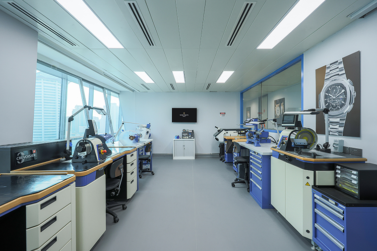 ศูนย์บริการที่ได้รับการปรับปรุงใหม่มีพื้นที่รวม 8,193 ตารางฟุต (828 ตร.ม.) พร้อมสิ่งอำนวยความสะดวกที่ยกระดับทั้งประสบการณ์การบริการและสภาพแวดล้อมการทำงานของช่างฝีมือ นอกเหนือจากศูนย์บริการด้านเทคนิคแล้ว ยังมีพื้นที่สำหรับลูกค้าโดยเฉพาะ รวมถึงเลานจ์หรู 2 ห้องสำหรับการชมเรือนเวลา การนำเสนอ และการสาธิตเชิงโต้ตอบโดยช่างนาฬิกาของ Patek Philippe รวมถึงห้องประชุมใหม่สำหรับการให้คำปรึกษาแบบส่วนตัว ศูนย์บริการได้รับการปรับผังใหม่ พร้อมคงไว้ซึ่ง 4 บริการหลัก ได้แก่ การบำรุงรักษาขั้นพื้นฐาน การซ่อมแซมกลไก การซ่อมแซมตัวเรือน และการตรวจสอบขั้นสุดท้าย เพื่อให้ทุกขั้นตอนของการบริการดำเนินไปอย่างแม่นยำและรอบคอบ การใช้พื้นที่ได้รับการปรับให้เหมาะสมเพื่อรองรับอุปกรณ์ใหม่ เพิ่มความสะดวกสบายในการทำงาน และสนับสนุนประสิทธิภาพของช่างฝีมือ ศูนย์บริการแห่งนี้มีทีมบริการลูกค้าทั้งหมด 33 คน รวมถึงช่างนาฬิกา 16 คน ซึ่งร่วมกันดูแลเรือนเวลาทุกเรือนอย่างไร้ที่ติ