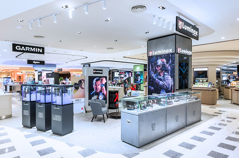 เปิดพื้นที่ให้แต่ละแบรนด์ถ่ายทอด Brand Identity ผ่านดีไซน์ร้านรูปแบบล่าสุด เสมือนยกบรรยากาศ Boutique มาไว้ภายในห้างฯ พร้อมรวบรวมแบรนด์ที่ครอบคลุมทุกเซกเมนต์ ตั้งแต่ Luxury Watch, Fashion Watch ไปจนถึง Smart Watch อาทิ Grand Seiko, Longines, Rado, Oris, Frederique Constant, Maurice Lacroix, Mido, Tissot, Hamilton, Seiko, Citizen, Casio, Orient, Garmin รวมถึงแบรนด์ พร้อมเครื่องเขียนระดับพรีเมียมจาก Lamy และ Parker ที่มาพร้อมกับบริการสลักชื่อ เพื่อเพิ่มความพิเศษ เอกลักษณ์เฉพาะบุคคล