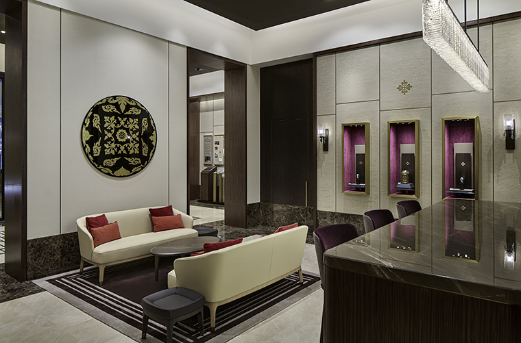 ด้านหลังเป็นพื้นที่รับรองส่วนตัวที่จัดสรรไว้สำหรับการชื่นชมและรับมอบนาฬิกาในบรรยากาศที่ผ่อนคลาย เปิดรับความโปร่งสบายด้วยหน้าต่างบานยาวที่ทอดรับแสงธรรมชาติ พร้อมชุดโซฟาที่จัดวางไว้เสมือนห้องนั่งเล่น ให้ความรู้สึกเป็นส่วนตัวและอบอุ่น เหมาะสำหรับการต้อนรับสมาชิกแบบครอบครัวอย่างแท้จริง
