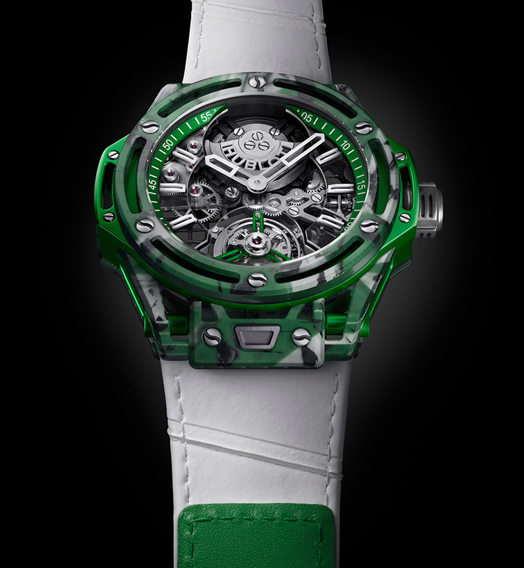 องค์ประกอบทุกส่วนถูกออกแบบให้ทำงานร่วมกันอย่างลงตัว จนได้นาฬิกาที่มีน้ำหนักเบาเพียง 56 กรัม และสามารถรองรับแรงกระแทกและแรงสั่นสะเทือนจากการสวมใส่ระหว่างการเล่นกีฬาได้อย่างมั่นใจ นี่คือผลงานที่ทั้งสร้างสรรค์และน่าจดจำ ซึ่งรังสรรค์ขึ้นเพื่อยกย่อง Novak Djokovic แบรนด์แอมบาสเดอร์ของ Hublot ผู้ได้รับการยอมรับว่าเป็น GOAT (Greatest of All Time) อย่างแท้จริง