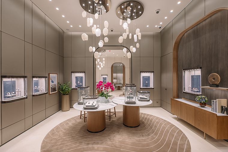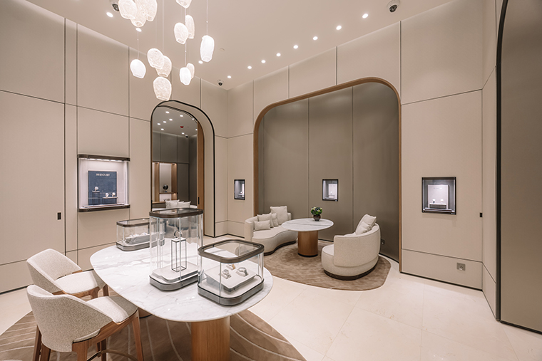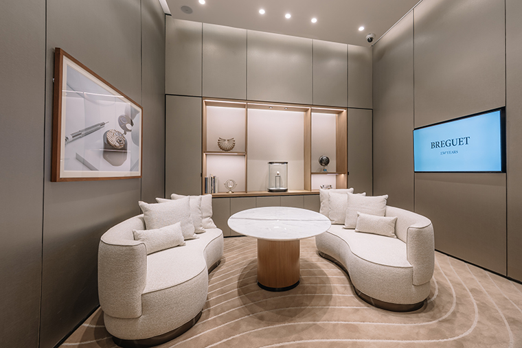 สำหรับบูติคแห่งแรก ณ ไอคอนสยาม นี้ ถ่ายทอดสถาปัตยกรรมร่วมสมัยเฉกเช่นเดียวกับบูติกสาขาสำคัญของแบรนด์ในทั่วโลก อาทิ สาขาแฟลกชิปที่ถนน Bahnhofstrasse ในมืองซูริค สวิตเซอร์แลนด์ ด้วยการตกแต่งภายในที่หรูหราและยังแฝงไปด้วยความอบอุ่นจากไม้อเมริกันวอลนัท หินอ่อน และเส้นสายที่ให้อารมณ์อ่อนช้อย พรมภายในร้านประดับลวดลาย guilloché (กิลโยเช่) อย่างประณีต ขอบเฟอร์นิเจอร์สะท้อนแรงบันดาลใจจากดีไซน์ตัวเรือนอันเป็นเอกลักษณ์ พร้อมเติมเต็มบรรยากาศด้วยโทนสีน้ำเงิน Breguet Blue อันโดดเด่นและสง่างาม ภายในบูติคยังมีโซนที่รองรับการให้บริการแบบส่วนตัว นอกจากนี้ ยังมีมุมให้คำปรึกษาแบบเอ็กซ์คลูซีฟเพื่อให้ลูกค้าได้สัมผัสกับเรือนเวลาที่ชื่นชอบอย่างใกล้ชิดอีกด้วย