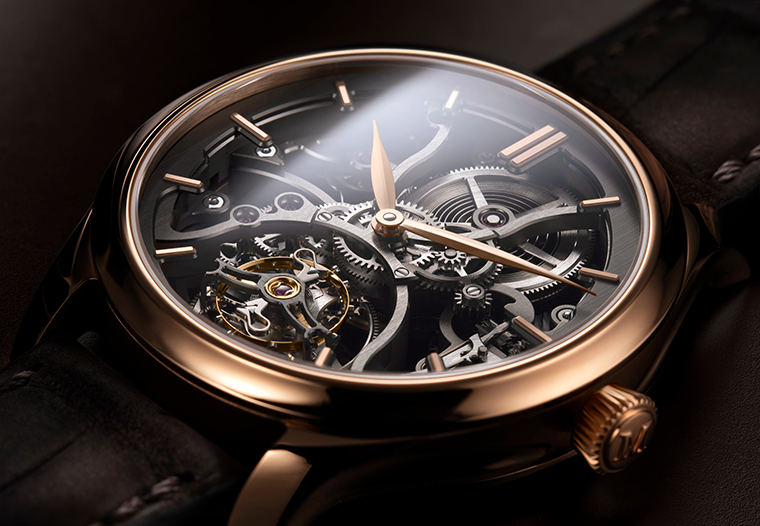 สําหรับ H. Moser & Cie. ความมินิมัล ไม่ใช่เพียงสไตล์ หากคือปรัชญาอย่างแท้จริง เป็นแนวคิดของการ "ลดทอน" เพื่อ "เปิดเผย" การขจัดทุกองค์ประกอบที่เกินจําเป็นออกไป เพื่อเผยให้เห็นความงามอันบริสุทธิ์และ ชัดเจนของกลไก นี่คือเอกลักษณ์ของแบรนด์ และในรุ่น Endeavour Tourbillon Skeleton นั้น Moser ได้ผลักดันแนวคิดนี้ไปถึงขีดสุด ด้วยนาฬิกาสเกเลตันเต็มรูปแบบที่ออกแบบมาเพื่อคงไว้เพียงสิ่งจําเป็นเท่านั้น เมื่อทุกอย่างถูกเปิดเผย เวลาเดินไปตามจังหวะของกลไกฟลายอิงทูร์บิญองที่หมุนรอบในหนึ่งนาที พร้อมสปริงสายใยคู่ (double hairspring) ที่ดูราวกับลอยอย่างไร้น้ําหนัก Endeavour Skeleton Tourbillon คือถ้อยแถลงแห่งสไตล์อย่างแท้จริง และเป็นตัวแทนแห่งความสง่างามที่ถูกรังสรรค์ขึ้นในตัวเรือนเรดโกลด์ 5N ขนาดเส้นผ่านศูนย์กลาง 40 มิลลิเมตร