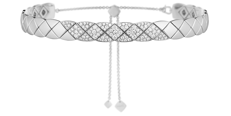 ลวดลายนูนที่เชื่อมต่อกันเป็นตาข่ายและการเลือกใช้ตัวล็อกแบบเลื่อน ทำให้เกิดความพอดีและการวางตำแหน่งอันงดงามสมบูรณ์แบบ สายสร้อยที่ตึงเรียบ ลายโค้งสมํ่าเสมอ และดีไซน์แบบกราฟิก ทำให้ผลงานCOCO CRUSH ยิ่งแสดงจุดยืนอันเป็นเอกลักษณ์ที่โดดเด่นได้อย่างชัดเจน สร้อยคอขนาดสั้นงดงามเปล่งประกายด้วย เบจโกลด์ เยลโลว์โกลด์ หรือไวท์โกลด์ พร้อมประดับเพชร ในท่วงท่าที่มั่นใจ เรียบง่ายและแม่นยำในคราว เดียวกัน ขณะที่โชคเกอร์ในโทนสีทองแบบเดียวกัน ก็มอบสไตล์ที่ท้าทายในแบบแนบชิดลำคอและสวยงามร่วมสมัย สร้อยคอเหล่านี้โอบรับพอดีกับช่วงรอบคอและหล่อหลอมเส้นสายของรูปร่างได้อย่างงดงาม