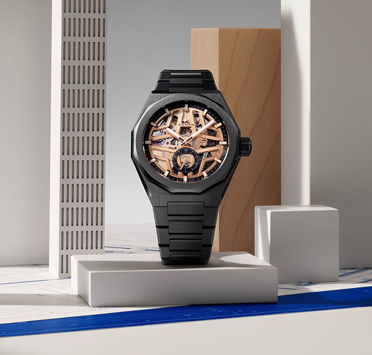 DEFY Skyline Skeleton ผลักดันภาษาการออกแบบนาฬิการ่วมสมัยไปสู่มิติใหม่ที่ถูกหล่อหลอมด้วยโครงสร้างแบบ เปิด ลวดลายเส้นสายเรขาคณิตที่คมชัด และการเล่นล้อกับแสงเงาที่สะท้อนภาพมหานครยุคใหม่ โครงสร้างแบบโอเพนเวิร์กของเรือนนี้เผยให้เห็นกลไก El Primero 3620 SK ได้อย่างเต็มตา ขณะเดียวกันการเล่นแสงและเงาก็สะท้อนจังหวะชีวิตอันพลิ้วไหวของเส้นขอบฟ้าของเมืองใหญ่ ผลงานรุ่นล่าสุดนี้ถูกนําเสนอในตัวเรือนเซรามิกสีดําสุดโดดเด่น จับคู่กับกลไกโทนสีทอง เสริมบุคลิกเชิงสถาปัตยกรรมให้ชัดเจนยิ่งขึ้น และมอบภาพลักษณ์ร่วมสมัยที่โดดเด่นในบรรยากาศแห่งมหานคร