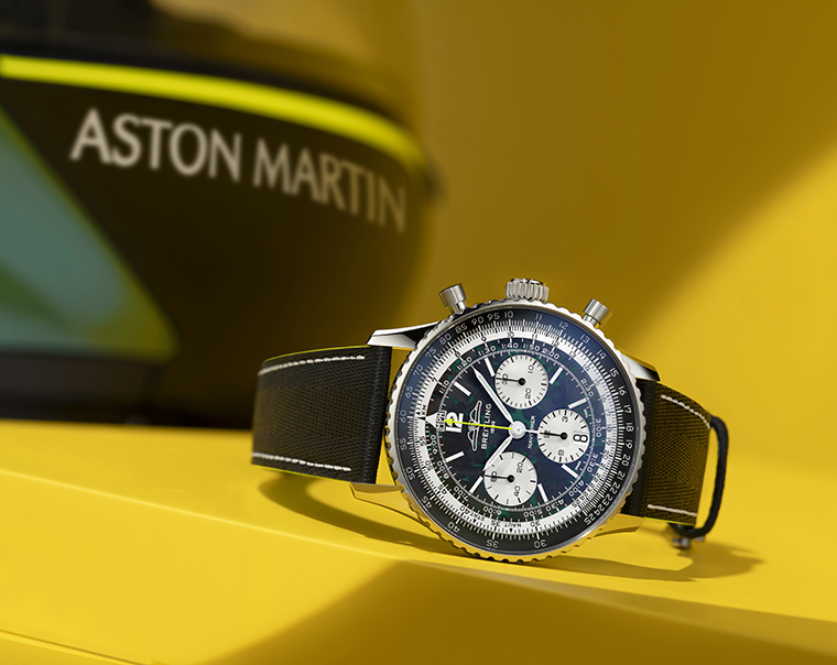 Breitling เข้าร่วมกับ Aston Martin และ Aston Martin Aramco Formula One Team ในฐานะ Official Watch Partner ภายใต้ความร่วมมือระดับโลกแบบหลายปี ซึ่งเชื่อมโยงโลกแห่งรถสมรรถนะสูงที่สร้างขึ้นด้วยงานฝีมือของ Aston Martin เข้ากับวิศวกรรมความเที่ยงตรงที่นิยามโปรแกรม Formula One ของทีม ความร่วมมือนี้เริ่มต้นด้วยการเปิดตัว Breitling Navitimer B01 Chronograph 43 Aston Martin Aramco Formula One Team เรือนเวลาที่ประกาศการกลับคืนสู่ F1® ของ Breitling