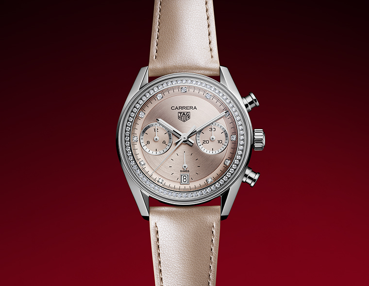 ดีไซน์โครโนกราฟยังคงเอกลักษณ์ของ Carrera ด้วยดีไซน์ที่อ่านค่าได้อย่างชัดเจนและสัดส่วนที่สมดุล ภายในขับเคลื่อนด้วยกลไกอัตโนมัติ Calibre TH20-00 ให้พลังงานสำรองยาวนานถึง 80 ชั่วโมง เสริมภาพลักษณ์ที่อ่อนโยนแต่แฝงความมั่นใจด้วยสายหนังสีชมพูพาสเทล เหมาะสำหรับผู้ที่มองหาของขวัญที่สะท้อนความรักอย่างละเมียดละไม