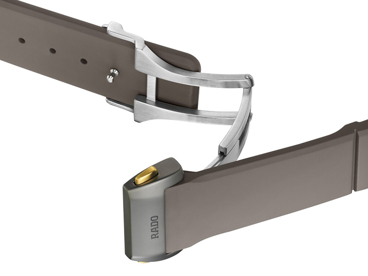 แม้จะมีการเปลี่ยนแปลงอย่างทรงพลังแต่นาฬิกาเรือนนี้ยังคงรักษาเอกลักษณ์และดีเอ็นเอด้านการออกแบบดั้งเดิมเอาไว้อย่างครบครัน โดยจะเห็นได้จากความงดงามของผิวพลาสมาเนื้อด้านที่ล้ําสมัยภายใต้เฉดสีเทาอันเรียบหรูที่มอบความหรูหราและแวววาวราวกับมุก ขอบตัวเรือนเซรามิกไฮเทคถูกออกแบบให้กลมกลืนกับเม็ดมะยมและฝาครอบชุดตัวล็อก ขณะที่องค์ประกอบทั้งหมดสอดผสานเข้ากับสายนาฬิกาสีเทากํามะหยี่ ซึ่งรังสรรค์จากยางชนิดพิเศษที่ให้ความยืดหยุ่น ปราศจากกลิ่น และทนทานต่อการสึกหรอ รวมถึงมีคุณสมบัติป้องกันแสงยูวี กรด และตัวทําละลายหลายชนิดอย่างครอบคลุม การใช้โทนสีทองอร่ามอย่างชาญฉลาดทั่วทั้งดีไซน์ ช่วยเติมเต็มมิติแห่งความหรูหราอย่างมีรสนิยม และตอกย้ำความสมดุลระหว่างรูปลักษณ์ภายนอกกับคุณค่าภายในได้อย่างลงตัว