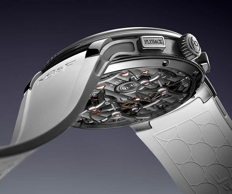 - ฟังก์ชั่นฟลายแบ็กได้เข้ามาเป็นส่วนหนึ่งของคอลเลกชั่น EVO ผ่านการเปิดตัว LM Sequential Flyback EVO รุ่นใหม่ ซึ่งบรรจุอยู่ในตัวเรือนไทเทเนียม พร้อมหน้าปัดสีอะความารีน และการออกแบบหน้าปัดแสดงเวลาในมุมเอียง รุ่นใหม่นี้ยังคงครบถ้วนด้วยคุณสมบัติเด่นของ EVO ได้แก่ ความสามารถในการกันน้ำลึก 80 เมตร เม็ดมะยมแบบขันเกลียว สายยางแบบอินทิเกรต และระบบรองรับแรงกระแทก “FlexRing”