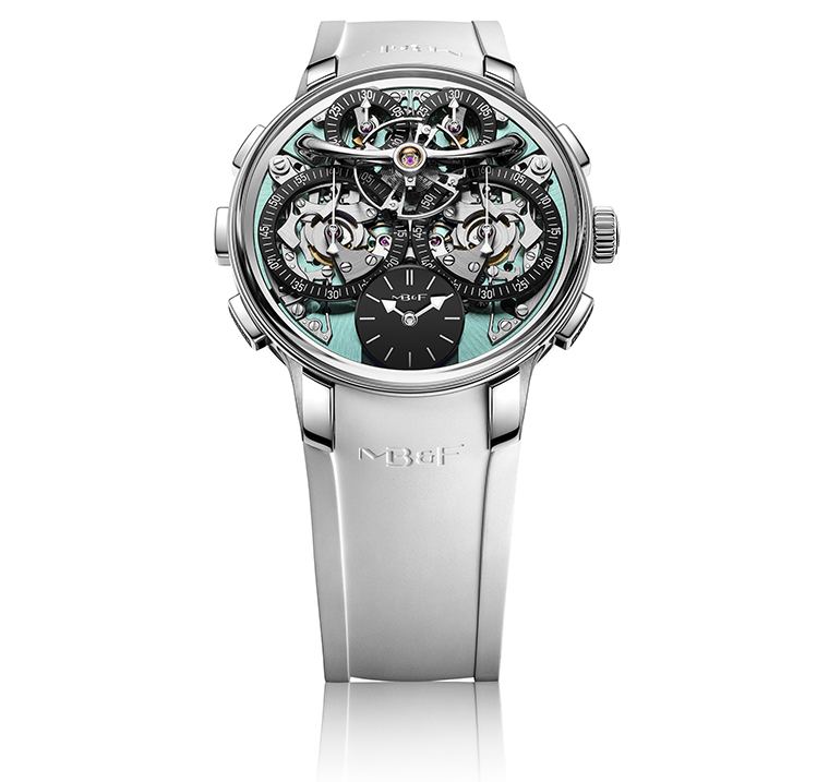 - LM Sequential EVO เปิดตัวในปี 2022 นับเป็นนาฬิกาโครโนกราฟเรือนแรกของ MB&F และเป็นกลไกลำดับที่ 20 ของแบรนด์ โดดเด่นด้วยนวัตกรรมทางเทคนิคที่สำคัญ พร้อมการผสานโหมดจับเวลาอย่างที่ไม่เคยมีมาก่อน ผ่านสวิตช์ “Twinverter” ซึ่งสามารถใช้งานได้ทั้งโหมดจับเวลาอิสระ, จับเวลาแบบแยกวินาที, จับเวลาสะสม และโหมดจับเวลาต่อรอบ โดยในปีเดียวกันนี้ รุ่นดังกล่าวยังได้รับรางวัลสูงสุดแห่งวงการนาฬิกา GPHG “Aiguille d’Or”