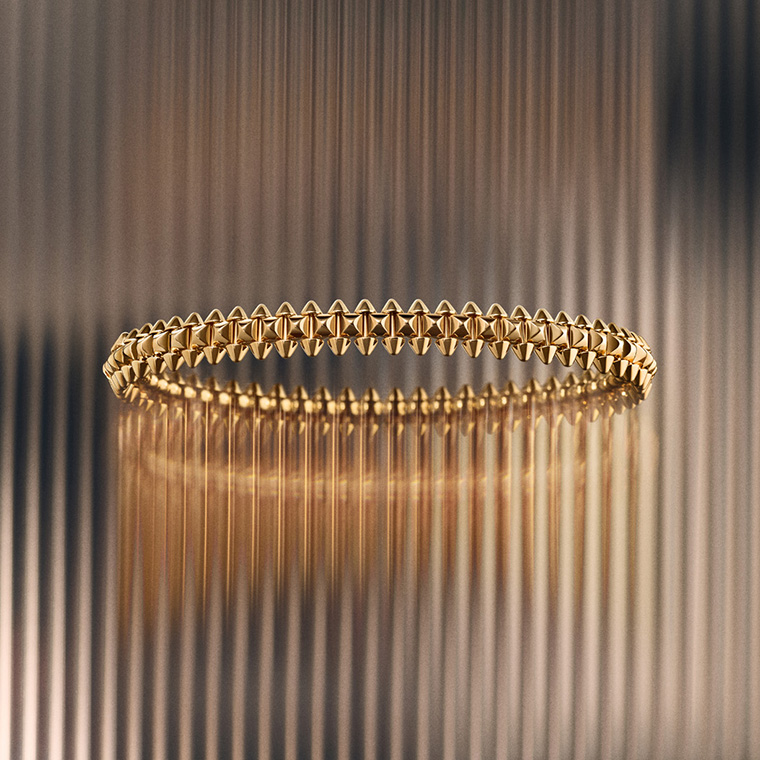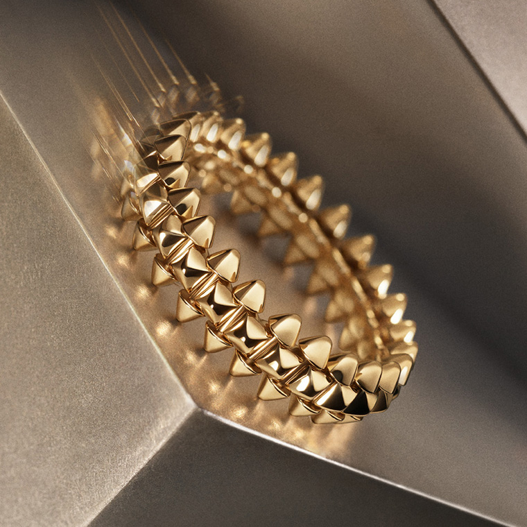 คาร์เทียร์ท้าทายรูปทรงเรขาคณิตของแคลช เดอ คาร์เทียร์ด้วยการรังสรรค์ชิ้นงานที่ยืดหยุ่นได้อย่างเต็มรูปแบบ รวมถึงสร้อยคอและสร้อยข้อมือเยลโลว์โกลด์รุ่นแรกของ คอลเลคชั่น ซึ่งต่อยอดมาจากรุ่นโรสโกลด์ ผลงานที่โดดเด่นสะดุดตาบางรุ่นมาพร้อมกับดีไซน์แบบสองแถว แต่ทุกชิ้นล้วนมีรากฐานมาจากความเชี่ยวชาญสองรูปแบบควบคู่กัน