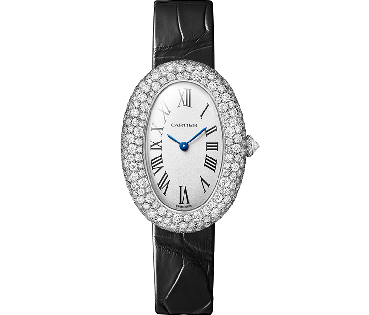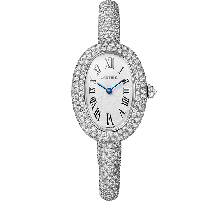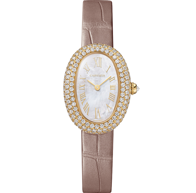 นาฬิกาเบญนัวร์ไซส์มินิ สะดุดตาด้วยขนาดอันประณีตและความแม่นยำในทุกรายละเอียด นี่คือผลลัพธ์ของวิสัยทัศน์ด้าน การออกแบบจิวเวลรีของคาร์เทียร์ที่ผสานเข้ากับศาสตร์แห่งการรังสรรค์เรือนเวลาอย่างลงตัว