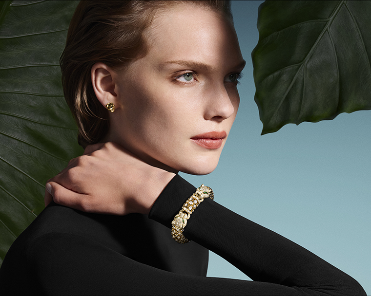 ผลงานเครื่องประดับถูกออกแบบให้แนบชิดเรือนร่าง ถ่ายทอดพลังและความเข้มแข็งอันเป็นเอกลักษณ์ของเสือแพนเตอร์ได้อย่างชัดเจน การเคลื่อนไหวของสร้อยคอและสร้อยข้อมือเกิดจากโครงสร้างที่ประกอบด้วยชิ้นส่วนสองส่วนไขว้กัน โดยมีแผ่นทองคำสองชิ้นเป็นตัวเชื่อมต่อกับสปริงสองตัวที่ซ่อนอยู่ภายในส่วนศีรษะของเสือแพนเตอร์ นี่คือความท้าทายด้านงานฝีมือที่ต้องอาศัยความละเอียดช่ำชองของช่างอัญมณีของเมซงเพื่อให้สามารถจัดวางลวดลายจุดของเสือแพนเตอร์ได้อย่างแม่นยำ