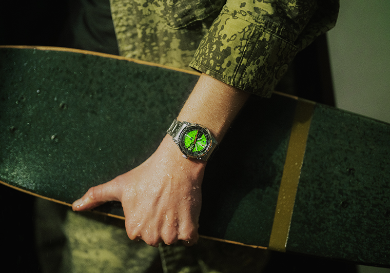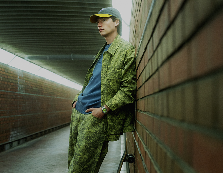 การโคจรกลับมาเจอกันอีกครั้งของ Seiko 5 Sports และ HUF ในปี 2026 นี้ จึงได้โอกาสหยิบเรือนเวลาสุดไอคอนิก อย่าง ‘Time Sonar’ โมเดลจากปี 1970s อันมีเอกลักษณ์เฉพาะ จากหน้าปัดนาฬิกาแบบ Transparent มาผสมผสานกับรูปทรงตัวเรือน Field Series และสี HUF Green จนกลายมาเป็นเรือนเวลาสไตล์ Vintage – Outdoorsy ที่เข้ากับการใช้งานในชีวิตประจำวัน และยังเป็นไอเท็มไม่ลับ ในการยกระดับการแต่งกายให้สนุกยิ่งขึ้น