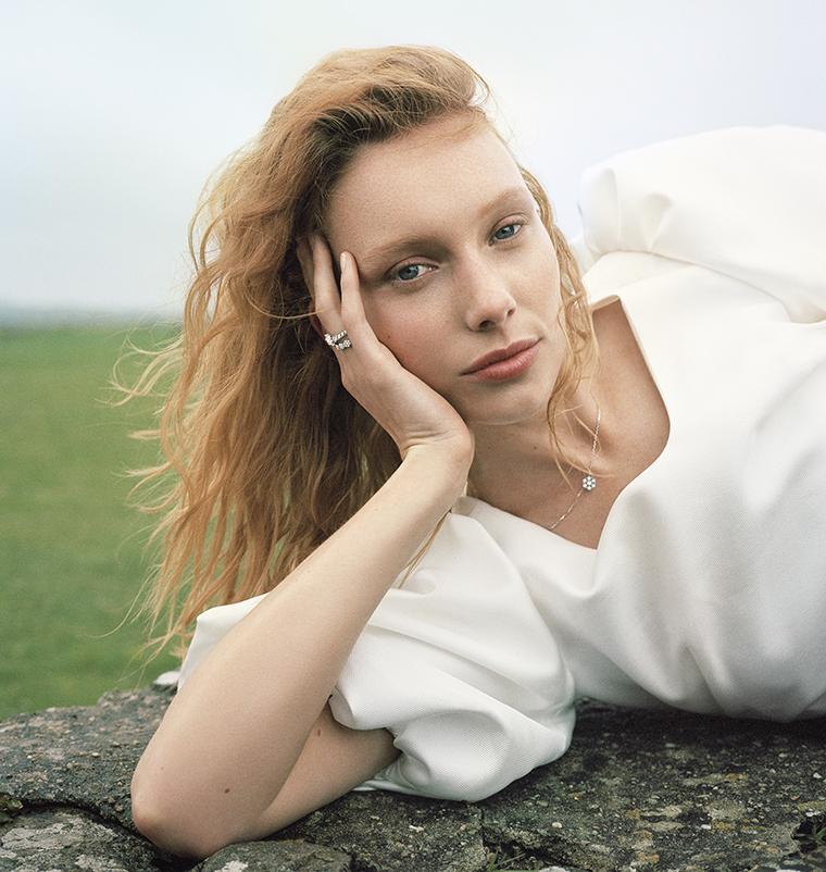 ทุกเรื่องราวชวนฝันในอาณาจักรแรงบันดาลใจของ Van Cleef & Arpels ยังสามารถถ่ายทอดมาสู่งานออกแบบ สร้างสรรค์คอลเลกชันแหวนเพชรเดี่ยวหรือ solitaire (ซึ่งบ่อยครั้ง อัญมณีหัวแหวนหาได้จำกัดแต่เพียงเพชร หากยังรวมถึงมรกต, ไพลิน, ทับทิม และอื่นๆ ได้เช่นกัน) และแหวนแต่งงาน (wedding band หรือแหวนแถว อันสื่อถึงวงตัวเรือน ที่อาจเป็นทองเนื้อเกลี้ยง หรือฝังเพชรเรียงแถว) จากธรรมชาติ, ศิลปะการตัดเย็บ และแต่งกาย, นาฏกรรม ไปจนถึงบรรดาสัญลักษณ์สื่อรักแทนใจ ล้วนถูกรังสรรค์อย่างงามสง่าลงสู่ผลงานอันเต็มไปด้วยความวิจิตรบรรจง บ่งบอกถึงความหมายลึกซึ้ง อย่าง Icône solitaire (อิโกน โซลิแตคร) สื่อถึงการหลอมรวมเป็นหนึ่งผ่านความอ่อนช้อยในรายละเอียดเพชรลูกล้อมเพชรเดี่ยวหัวแหวนบนโค้งแหวน ในขณะที่แหวนแถว Perlée และ Estelle (เอสแต็ลล์) ให้ความรู้สึกอ่อนหวาน และสดใสจากลูกปัดทอง หรือแพลทินัมเรียงแถวตลอดสันขอบรอบวงแหวน ผลงานรุ่น Bonheur (บอเนอร) เพชรเดี่ยวบนเรือนทองเนื้อเกลี้ยงกับ Romance เพชรเดี่ยวบนเรือนทองฝังเพชรเรียงแถวเดี่ยว ต่างถ่ายทอดอารมณ์โรแมนติกผ่านความเรียบง่าย และงามสง่าในงานออกแบบ โดยมี Boucle จำลองความอ่อนช้อยของขดห่วงริบบินมัดโบว์ กับงานออกแบบห่วงรังดุมกระหวัดรอบเพชรเดี่ยวของ Couture ให้ความรู้สึกถึงสัมผัสทะนุถนอมจากแถบริบบินผ้าบางเบา