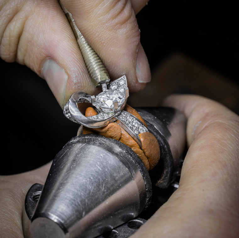 ภายในห้องปฏิบัติการสร้างสรรค์แผนกต่างๆ ของเมซง ผลงานแต่ละชิ้นล้วนเป็นการสืบสานขยายผลจากธรรมเนียมนิยมความเป็นเลิศ และไหวพริบในการพลิกแพลงทักษะ ความชำนาญทางหัตถศิลป์เครื่องประดับชั้นสูง หลอมรวมไว้ซึ่งหลากเทคนิคบนความพิถีพิถัน และความอดทน ตลอดหลายขั้นตอนสลับซับซ้อนของกระบวนการสร้างสรรค์ตัวเรือนทองคำของเครื่องประดับแต่ละชิ้น ความพิถีพิถันทางงานฝีมือของช่างขึ้นแบบปรากฏให้ประจักษ์อย่างชัดเจนตั้งแต่งานหล่อโครงสร้าง, เก็บรายละเอียด, ตกแต่งตำแหน่งรองรับงานฝังอัญมณีตลอดโค้งสัณฐาน ขณะเดียวกับที่ช่างฝีมือขัดผิวต้องใช้เชาวน์ชำนาญในการเลือกอุปกรณ์ให้เหมาะสม จากด้ายตะไบไปจนถึงแปรงขัดต่างทรง ต่างขนาด เพื่อให้เนื้อทองหมดจด เกลี้ยงเกลาเป็นเงางาม เผยความเลอค่าผ่านประกายล้อแสงก่อนช่างฝังอัญมณี จะบรรจงลงเพชรทีละเม็ด ทีละตำแหน่งบนโครงสร้าง“ฉลุลายเปิดโปร่ง” หรือ mise à jour (มิซซาฌูร) ของตัวเรือนทองคำ ช่วยให้แสงลอดผ่านน้ำเพชร เร่งประกายสว่างระยิบระยับ